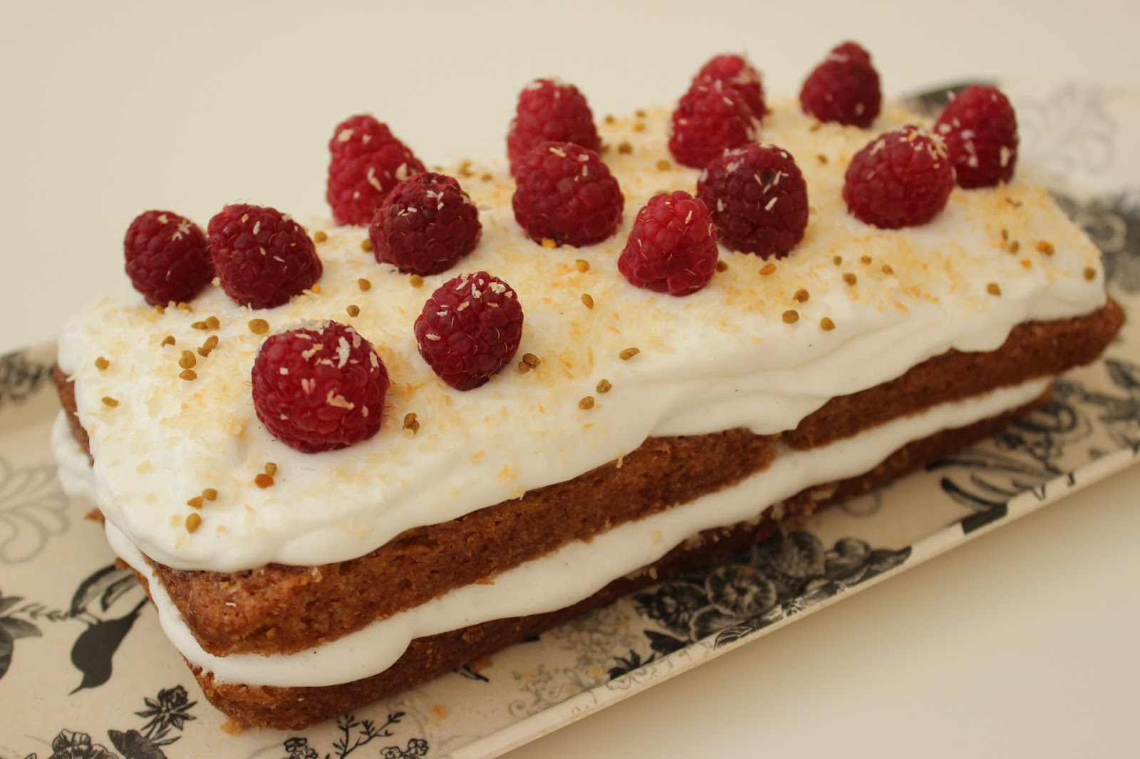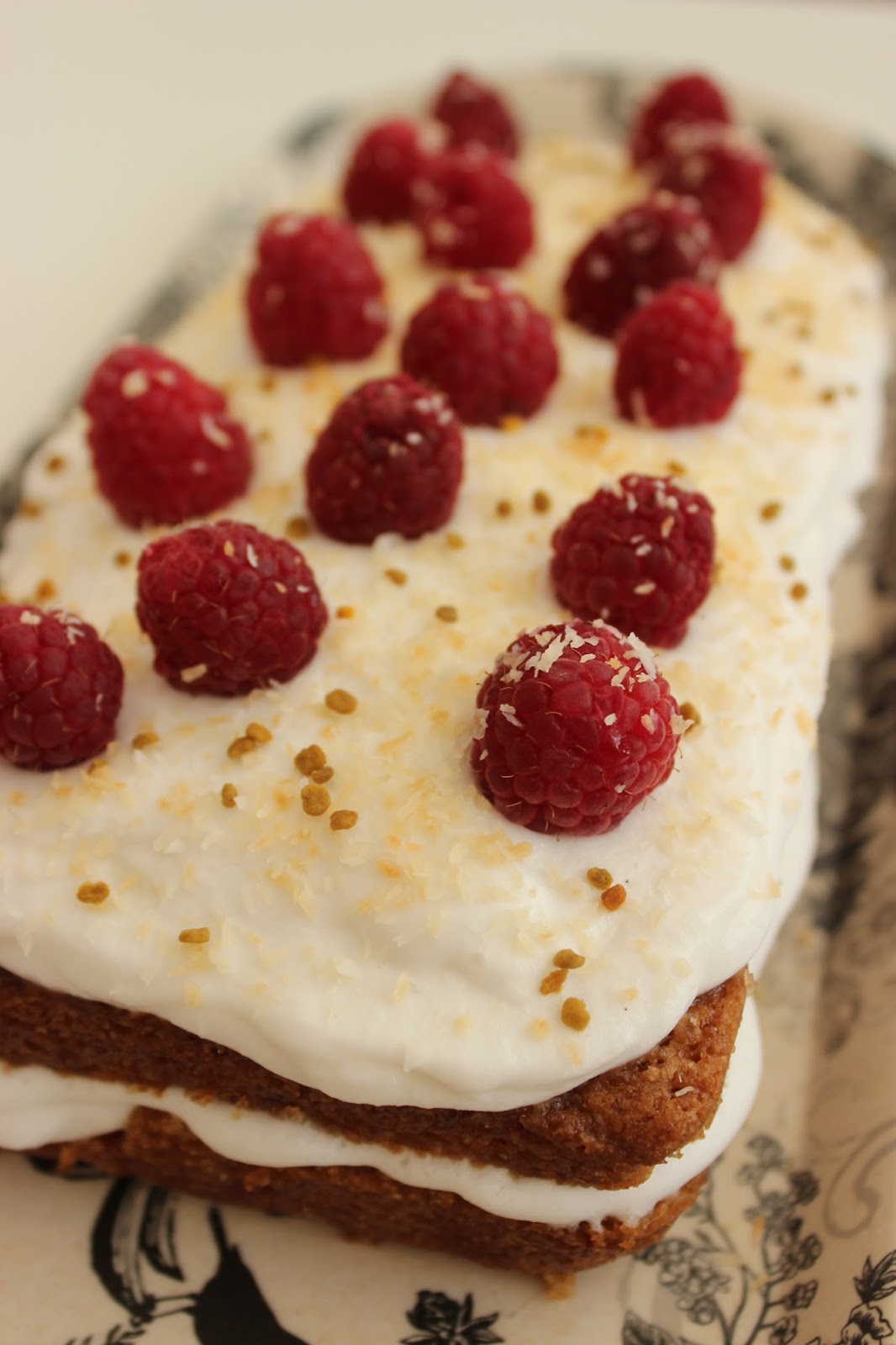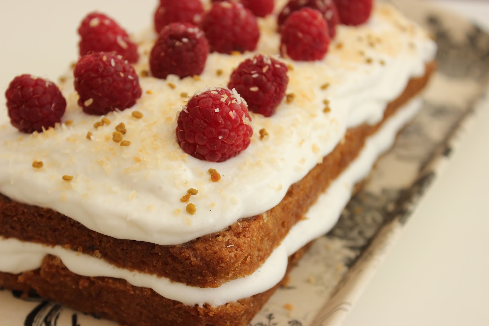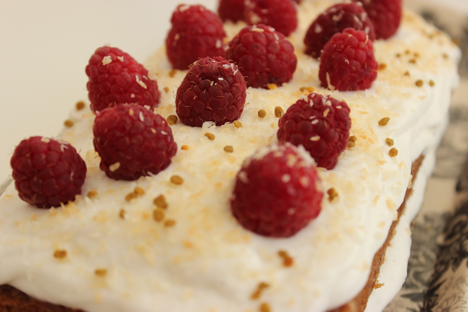 - אולי שמתם לב שיש עוד משהו שמקשט את העוגה שלי, בנוסף לפטל ולקוקוס הקלוי – פולן דבורים, הדבר הזה שמצד אחד אומרים שהוא סופר בריא, מצד שני אין לכך הוכחות אמיתיות. אבל אני די בטוחה שהפולן הוא לא טבעוני, כך שהייתי מוותרת עליו אם אתם אופים לקהל טבעוני.