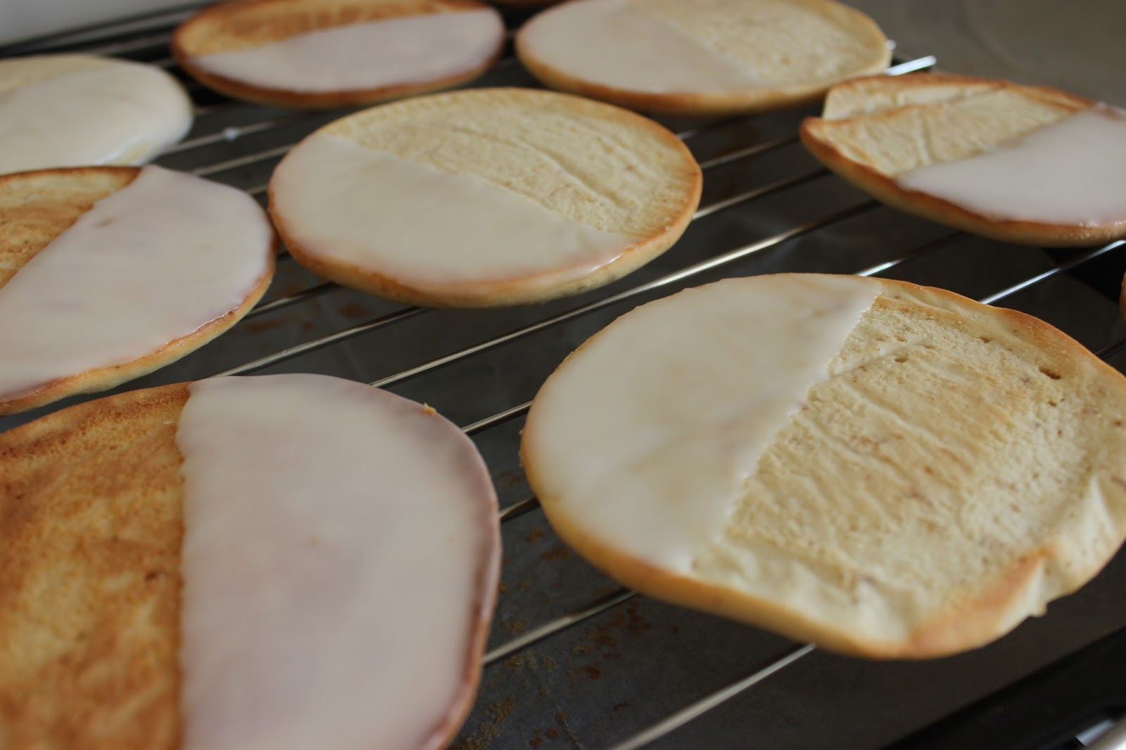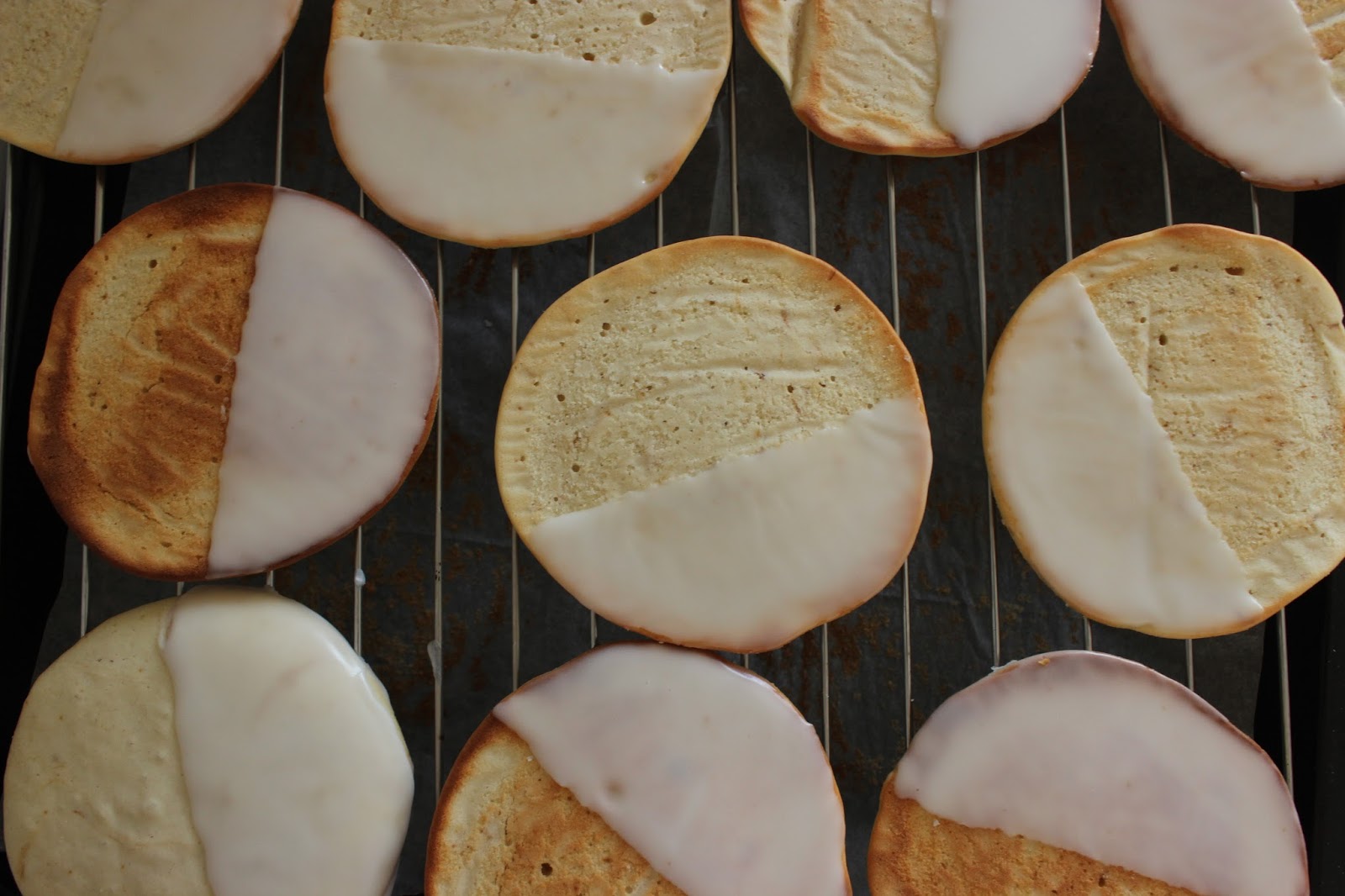 אבל בשורה התחתונה, לאחר שני נסיונות, קיבלתי עוגיות בלאק אנד ווייט די גדולות, מתוקות מאד (בכל זאת אמריקאיות..), יחסית עגולות ומצופות בצורה.. כמעט הגיונית.