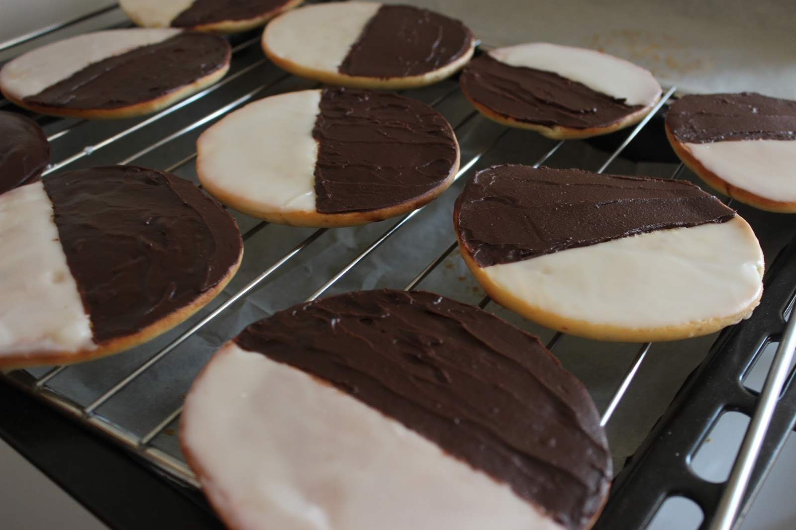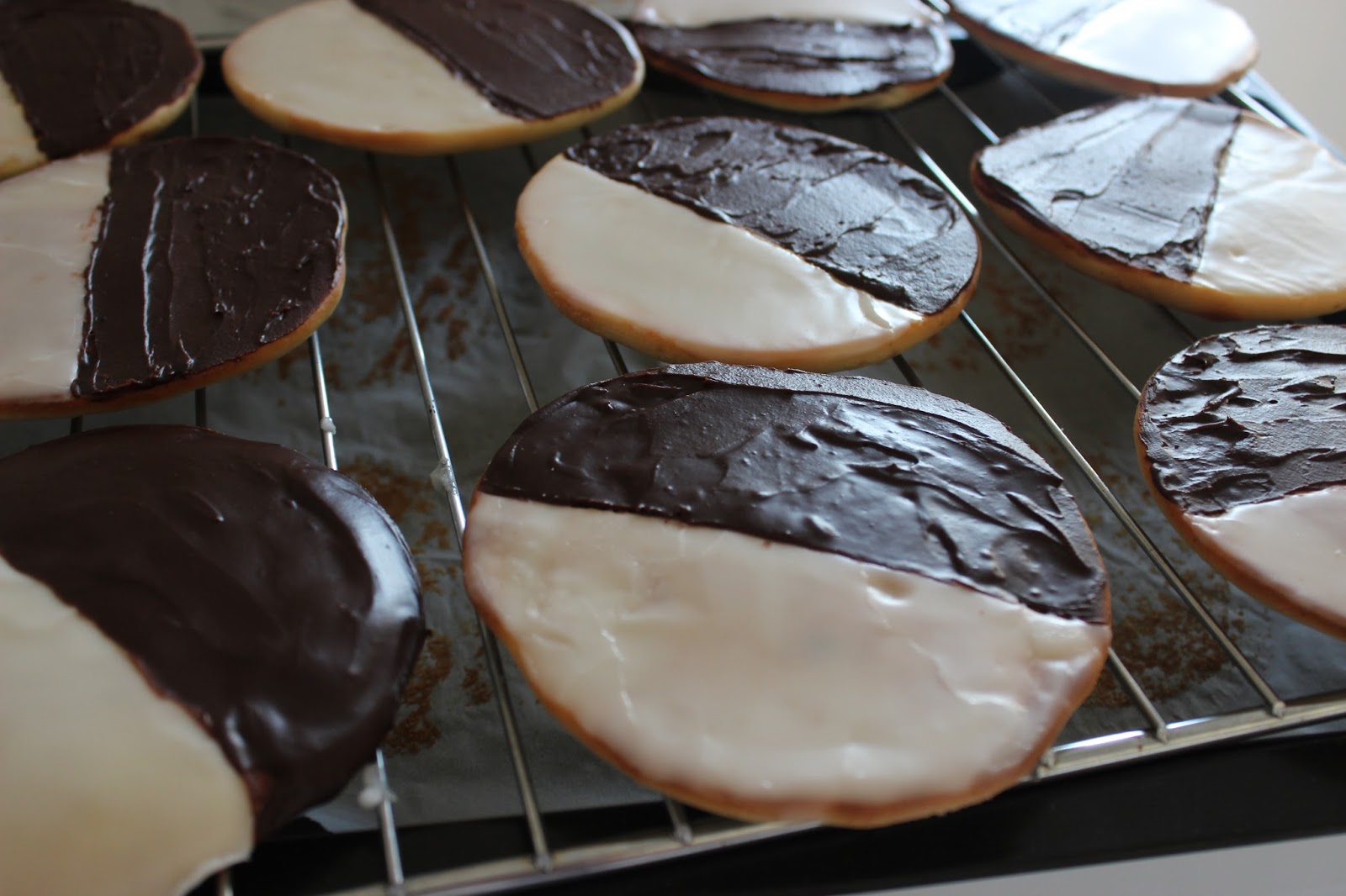 הבעיה היחידה — לא היה לי מושג איך מכינים עוגיות שחור-לבן שכאלה. אני בכלל חשבתי שמדובר בעוגיות חמאה מצופות בקרם לבן וקרם שחור.