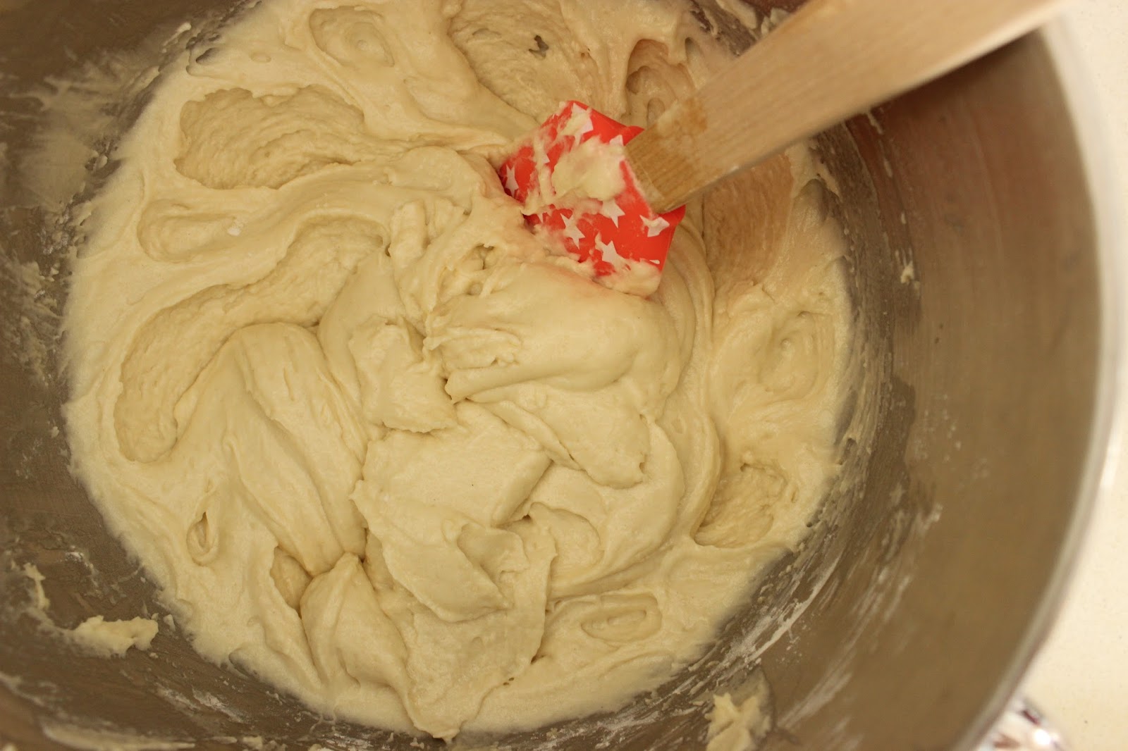2. מניחים סוכר וחמאה בקערת המיקסר. מחברים וו גיטרה ומקרימים היטב על מהירות בינונית-גבוהה, משהו כמו שתיים-שלוש דקות.