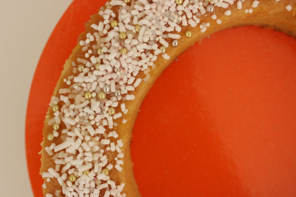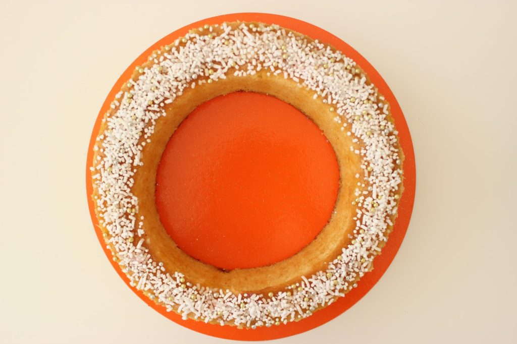 וכמובן כמובן, הנחתי את העוגה על “צלחת” (או פשוט מגש חד פעמי, בסדר.. עקשנים) בצבע כתום זוהר. כי הולנד. התרגשויות.