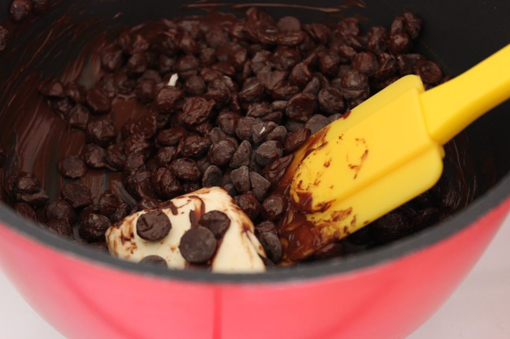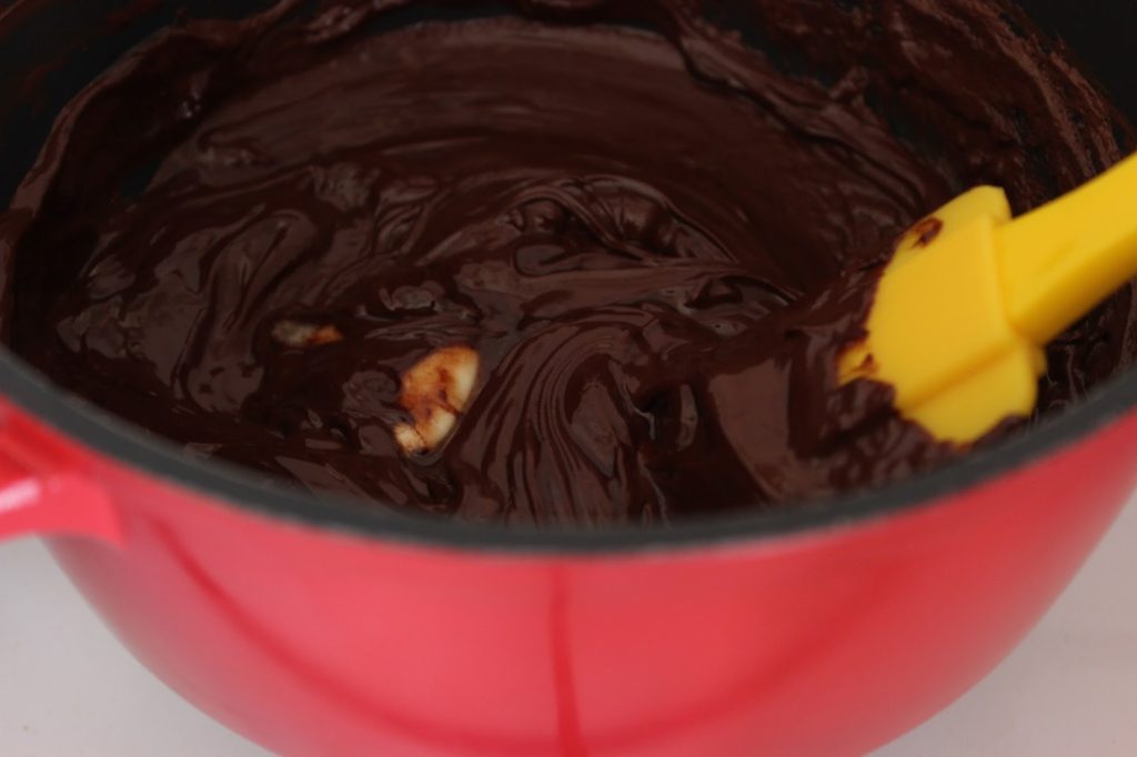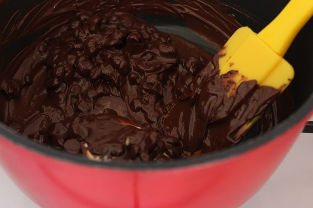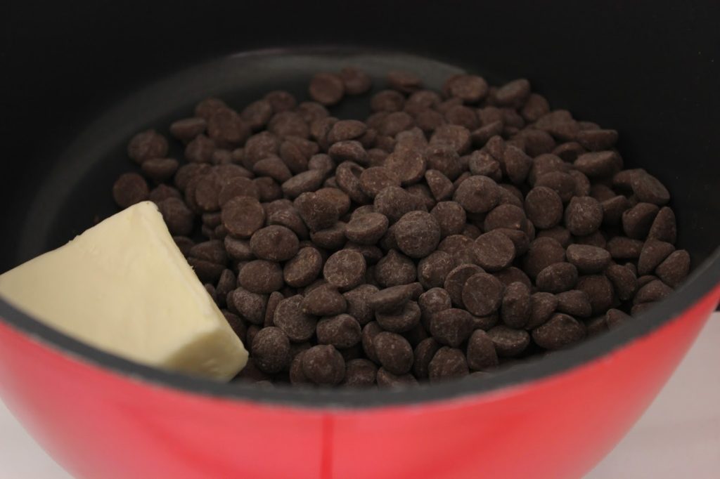 2. ממיסים שוקולד מריר וחמאה בסיר בינוני. מניחים בצד.