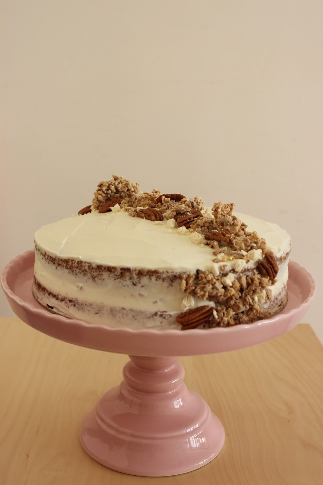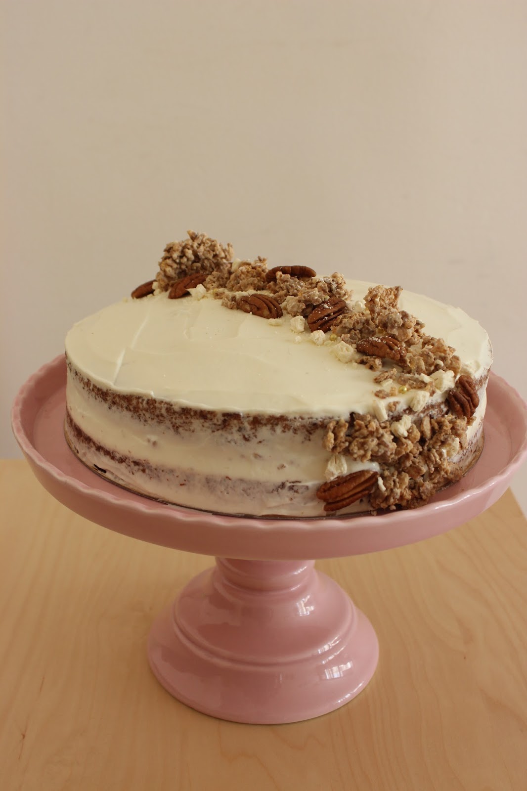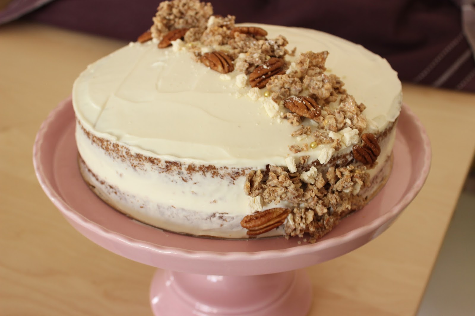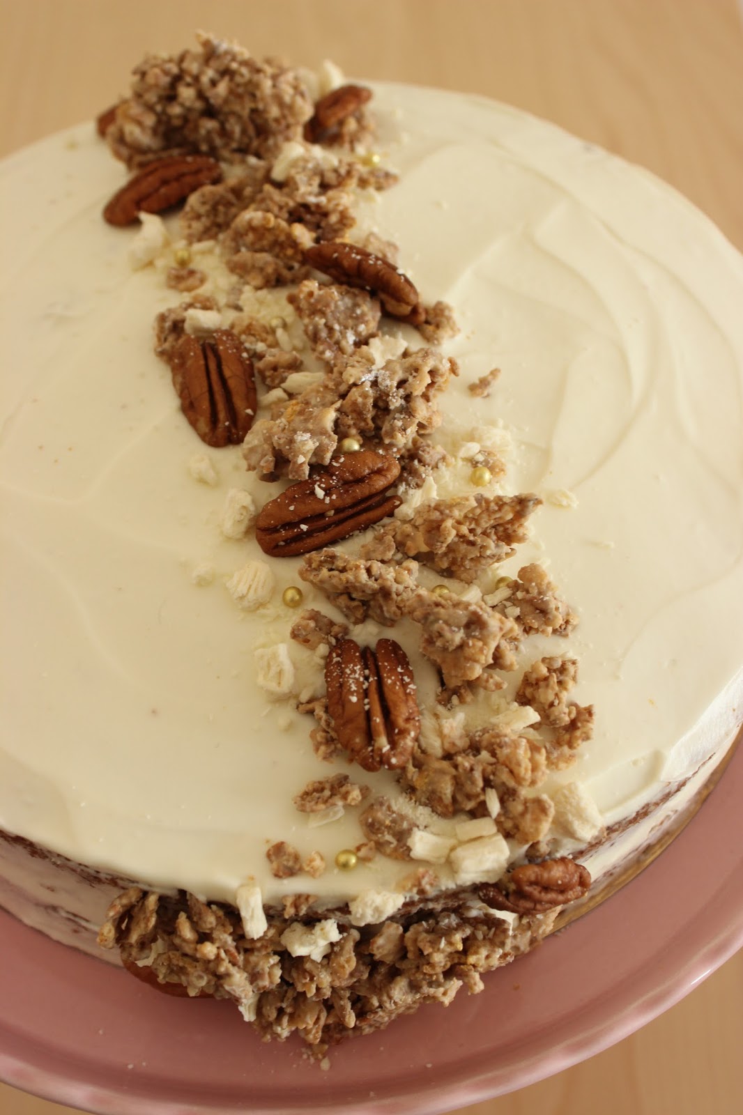 מקור המתכון: העוגה עצמה היא עוגת הווניל הקבועה שלי שעברה הסבה לעוגת וניל-פקאן.