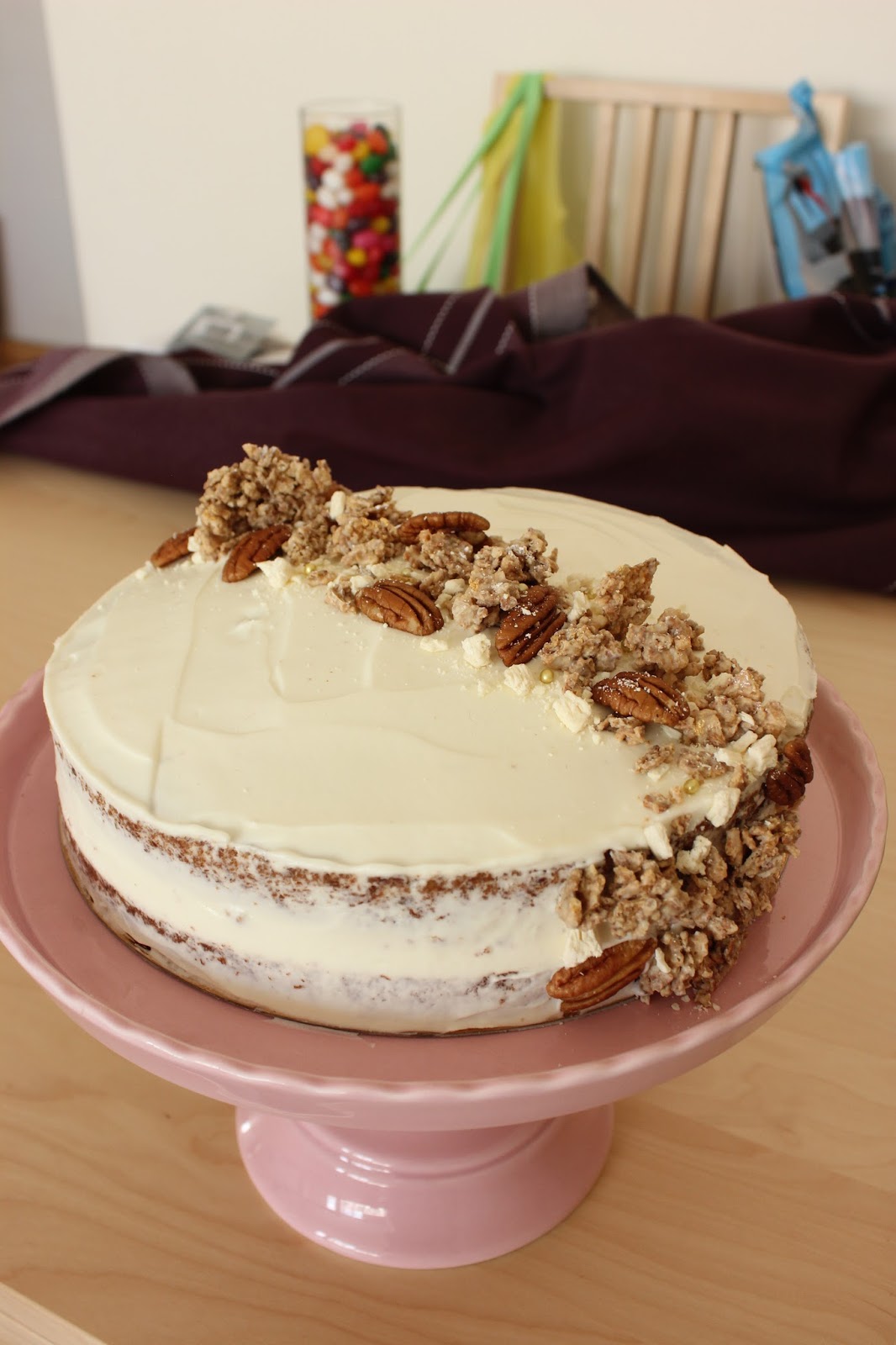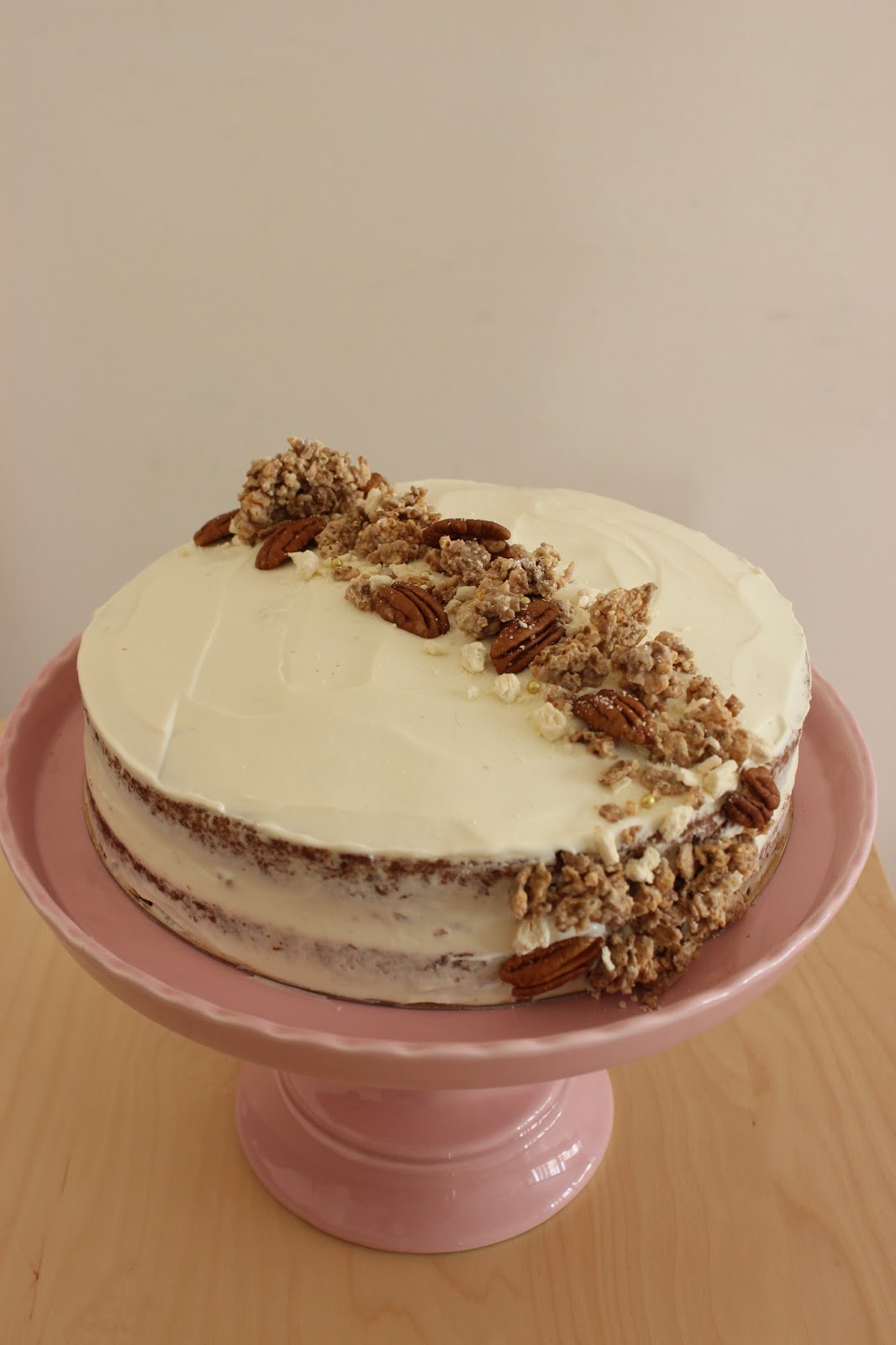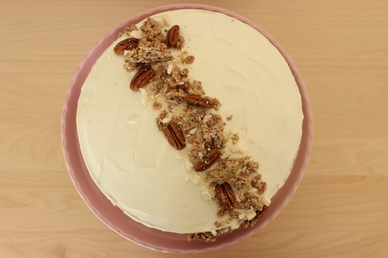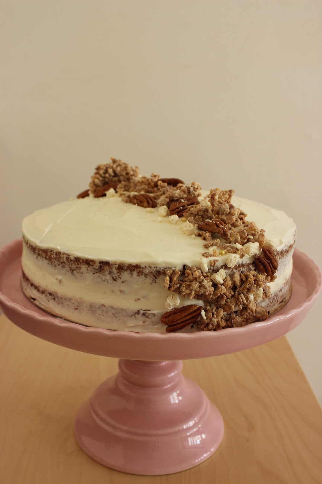 מקור המתכון: העוגה עצמה היא עוגת הווניל הקבועה שלי שעברה הסבה לעוגת וניל-פקאן.