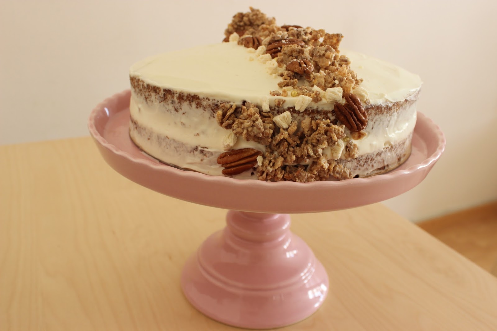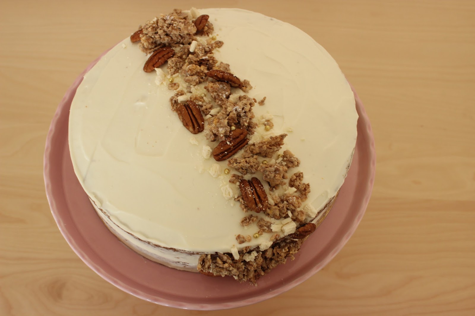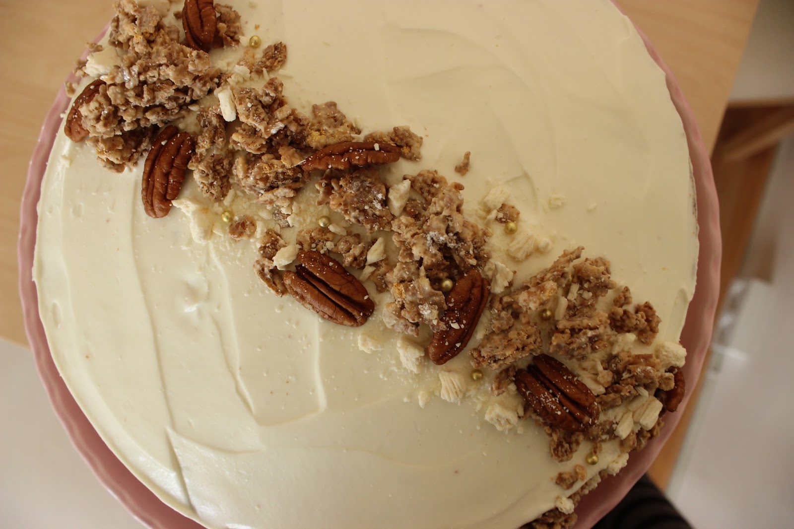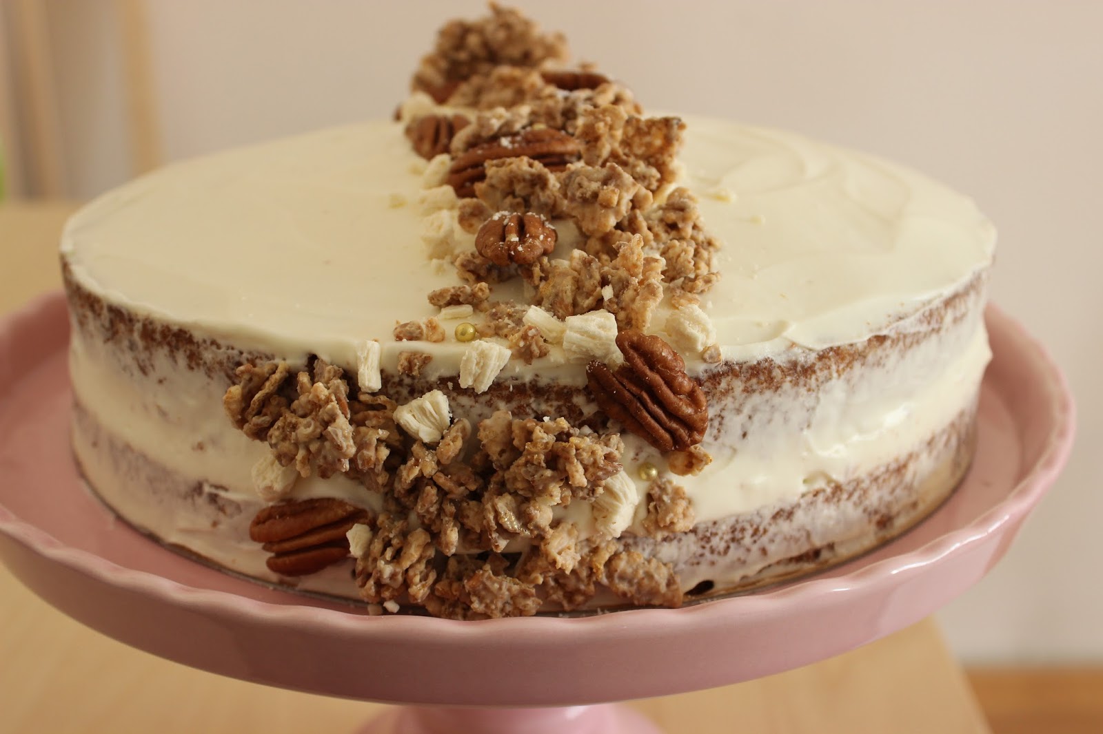 עוגת וניל-פקאן עם קרם שוקולד לבן וקראנץ’ קורנפלקס