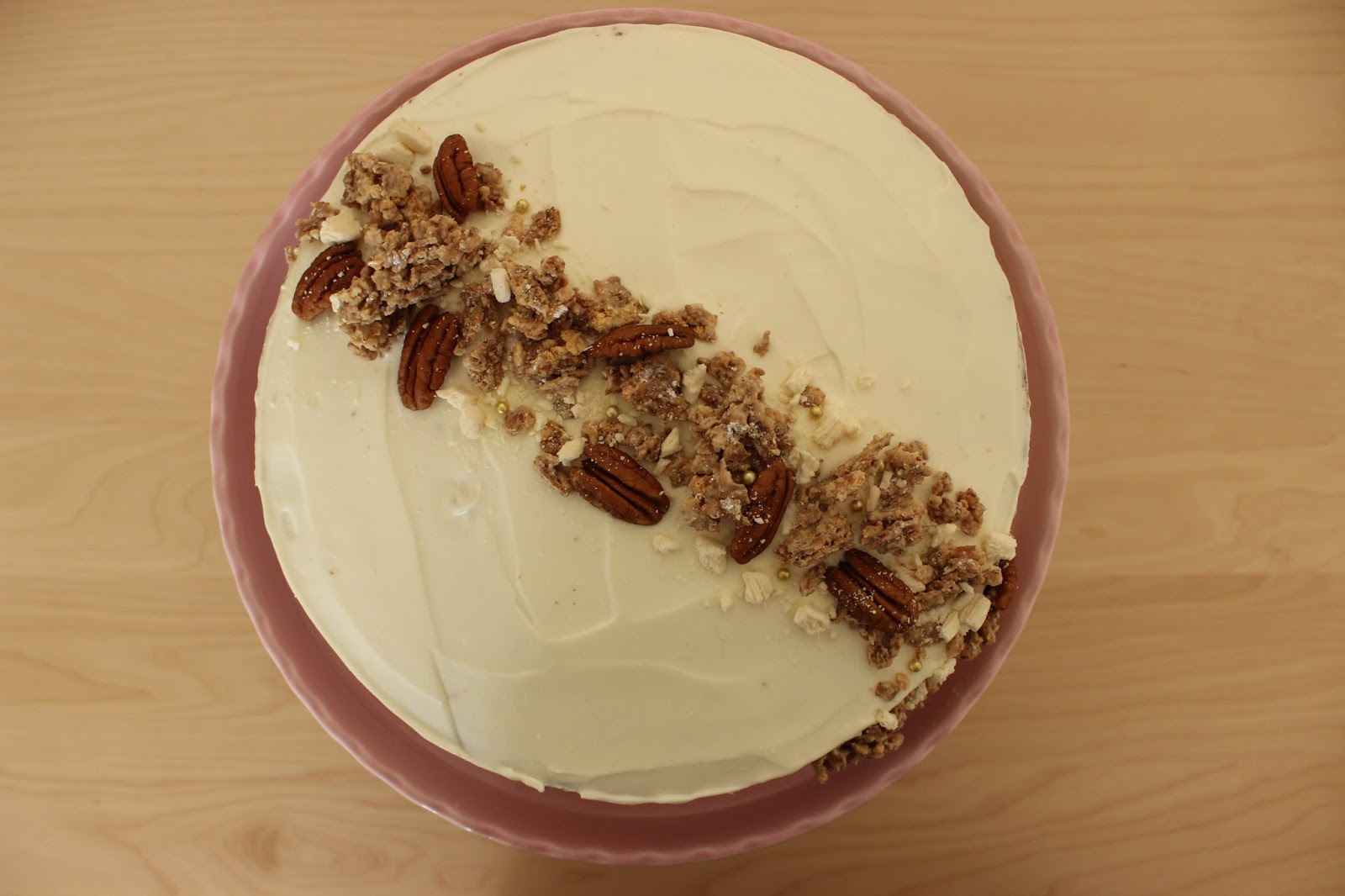 - כפי שאפשר לראות בתמונות, אני קישטתי את העוגה גם בפקאנים שלמים, קישוטי זהב ופירורי מקופלת לבנה. אבל תעשו מה שבא לכם, טוב? טוב.