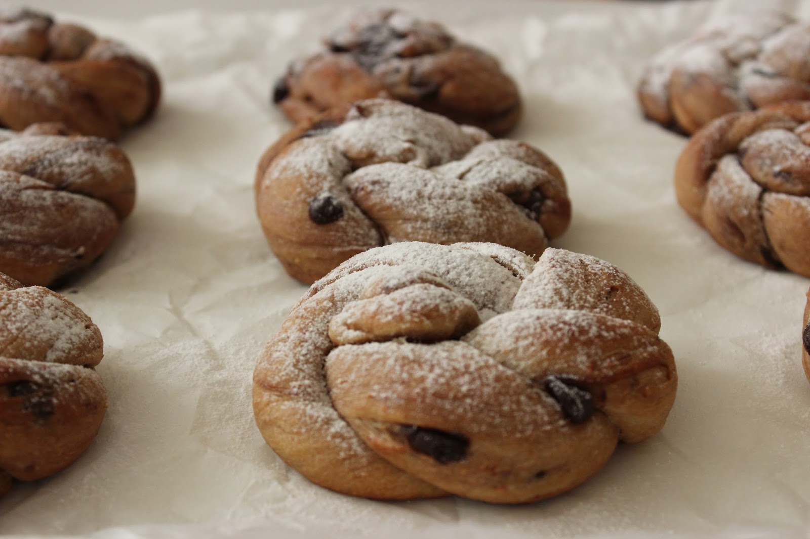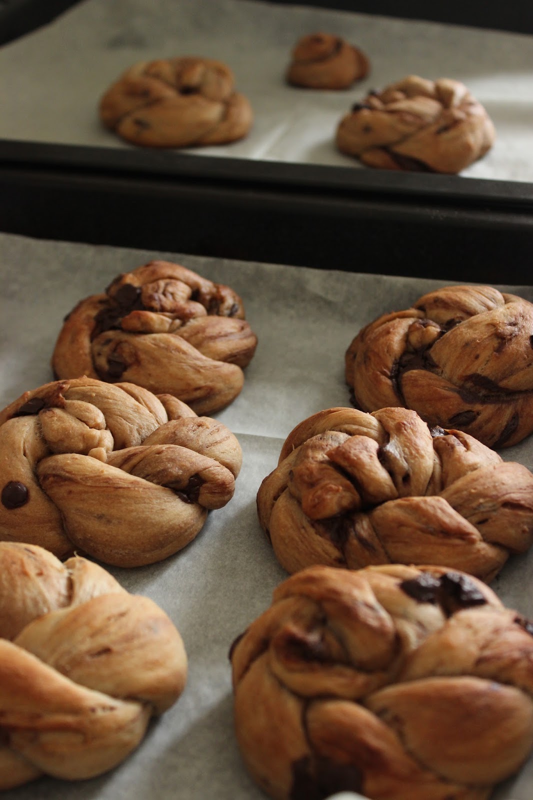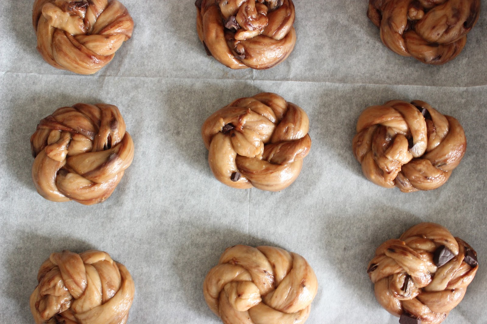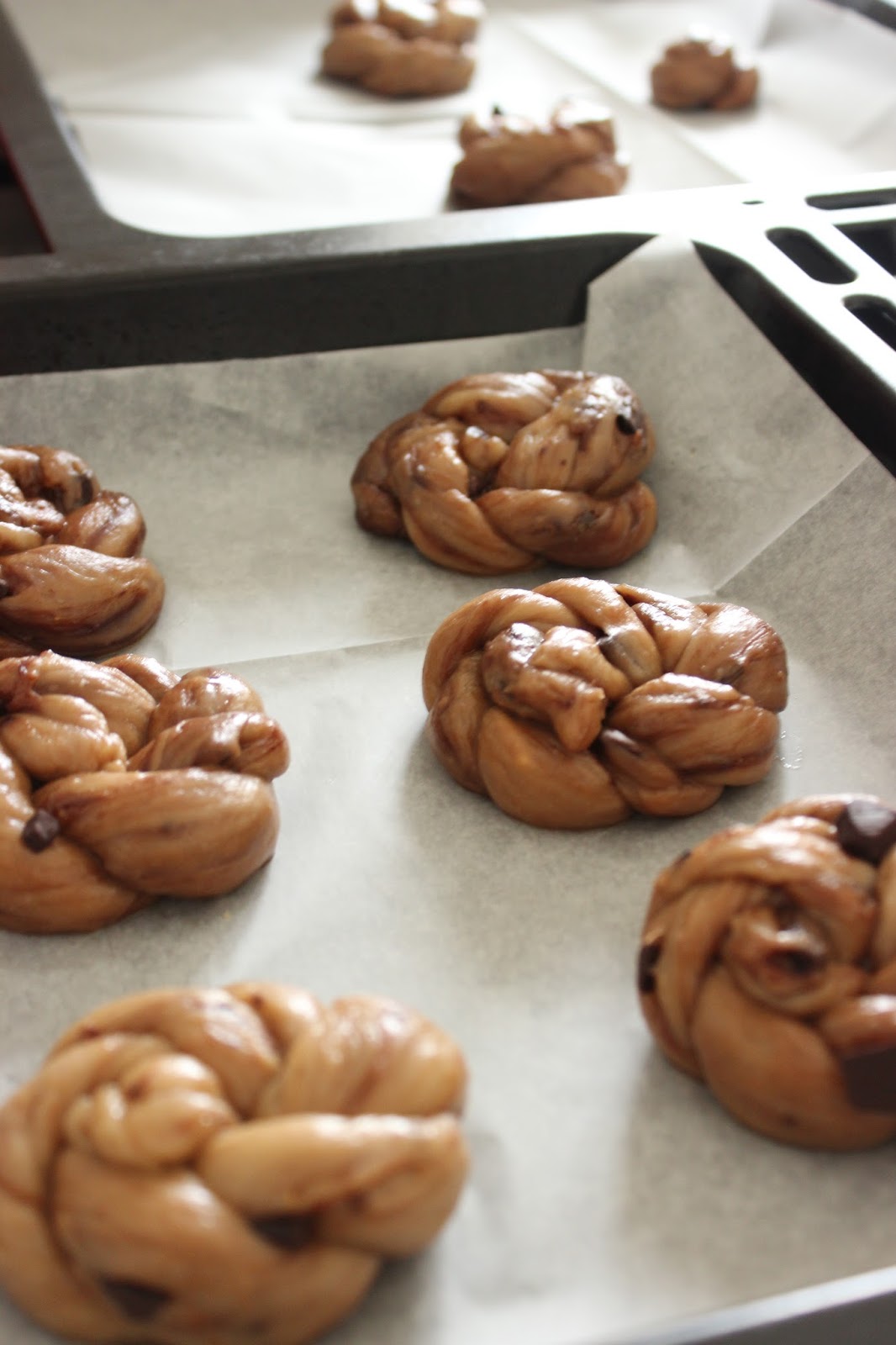 6. מניחים את המאפים על תבנית מרופדת בנייר אפיה ומתפיחים התפחה שניה, למשך כחצי שעה.