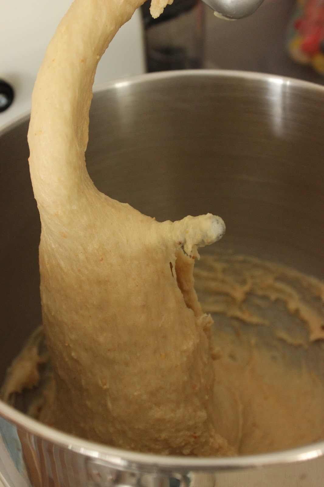 1. מניחים שמרים, סוכר, מים, שמן, חמאת בוטנים, קמח ומלח בקערת המיקסר. מחברים לישה – מתחילים לעבד על מהירות נמוכה, עד לקבלת בצק. בשלב זה מגבירים מהירות בהדרגה, עד להגעה למהירות מקסימלית. לשים כשמונה-עשר דקות.