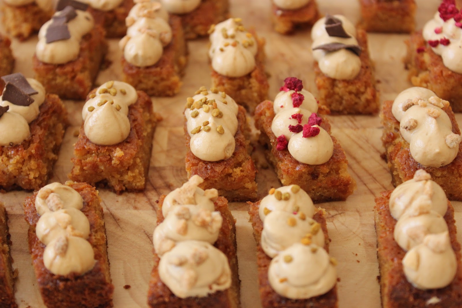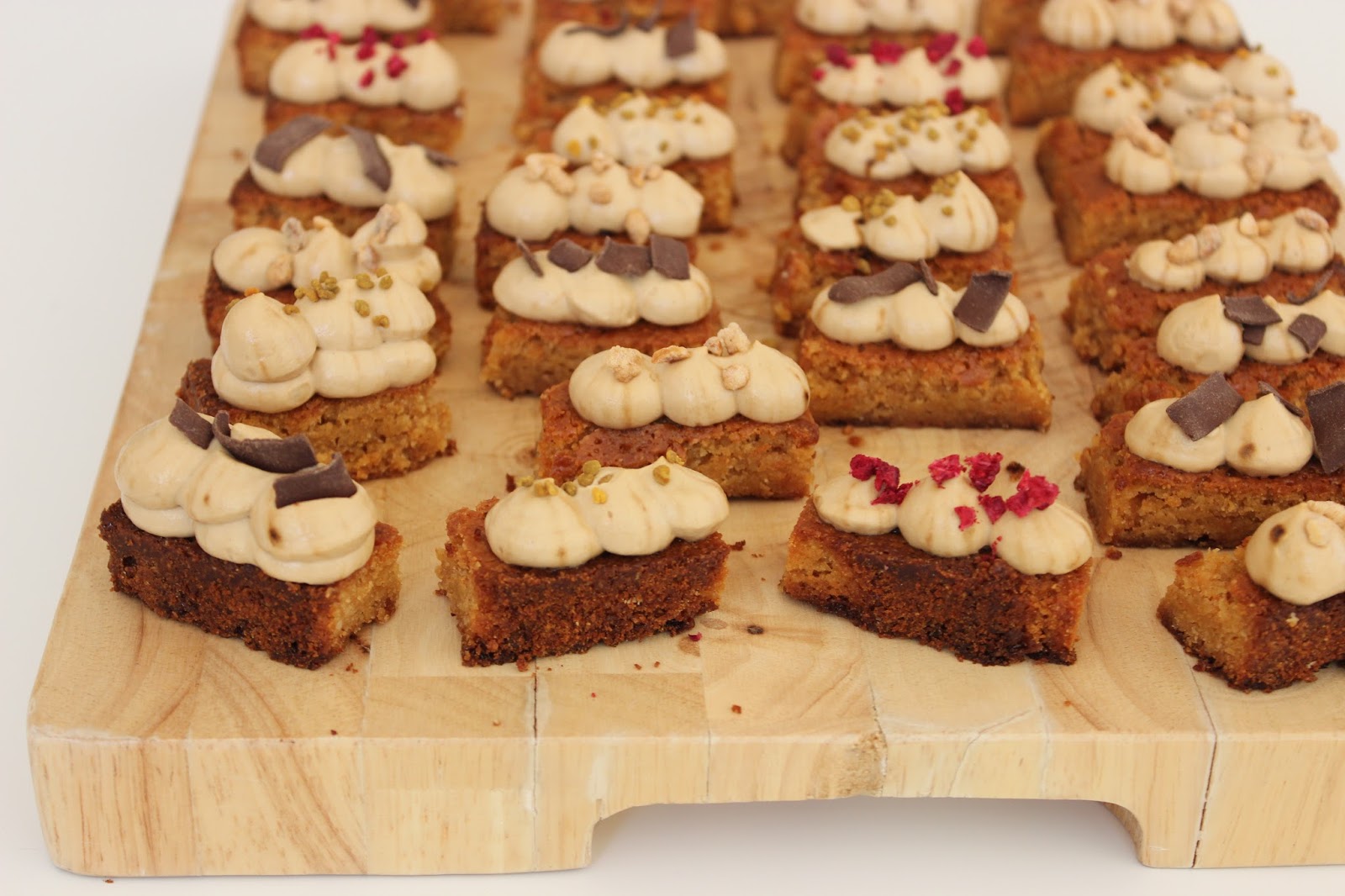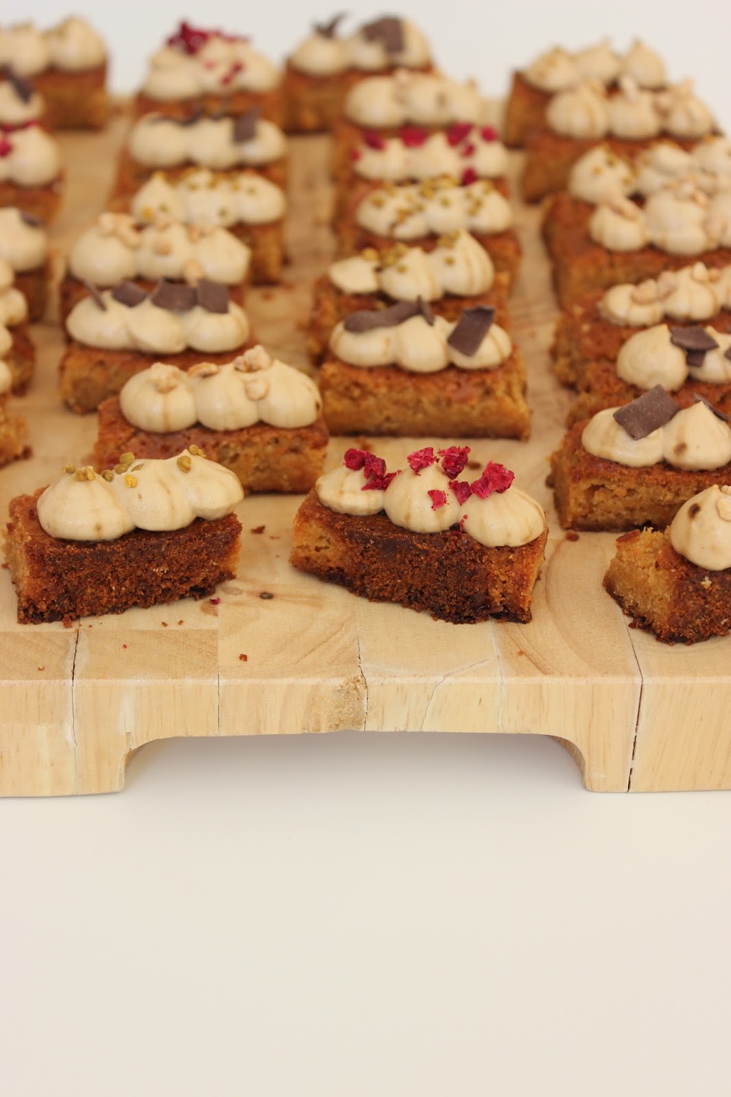 בראוניז שוקולד לבן מקורמל ללא גלוטן עם קצפת קפה