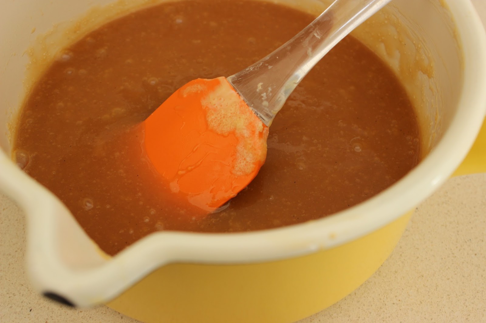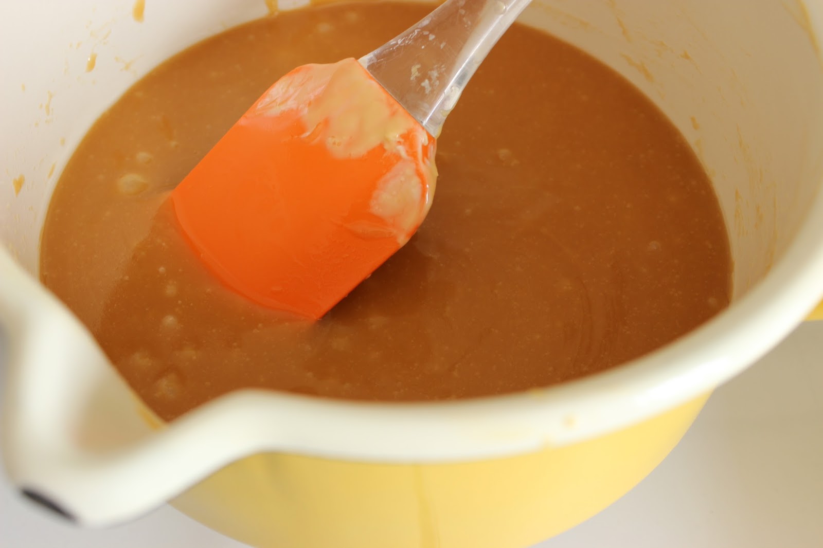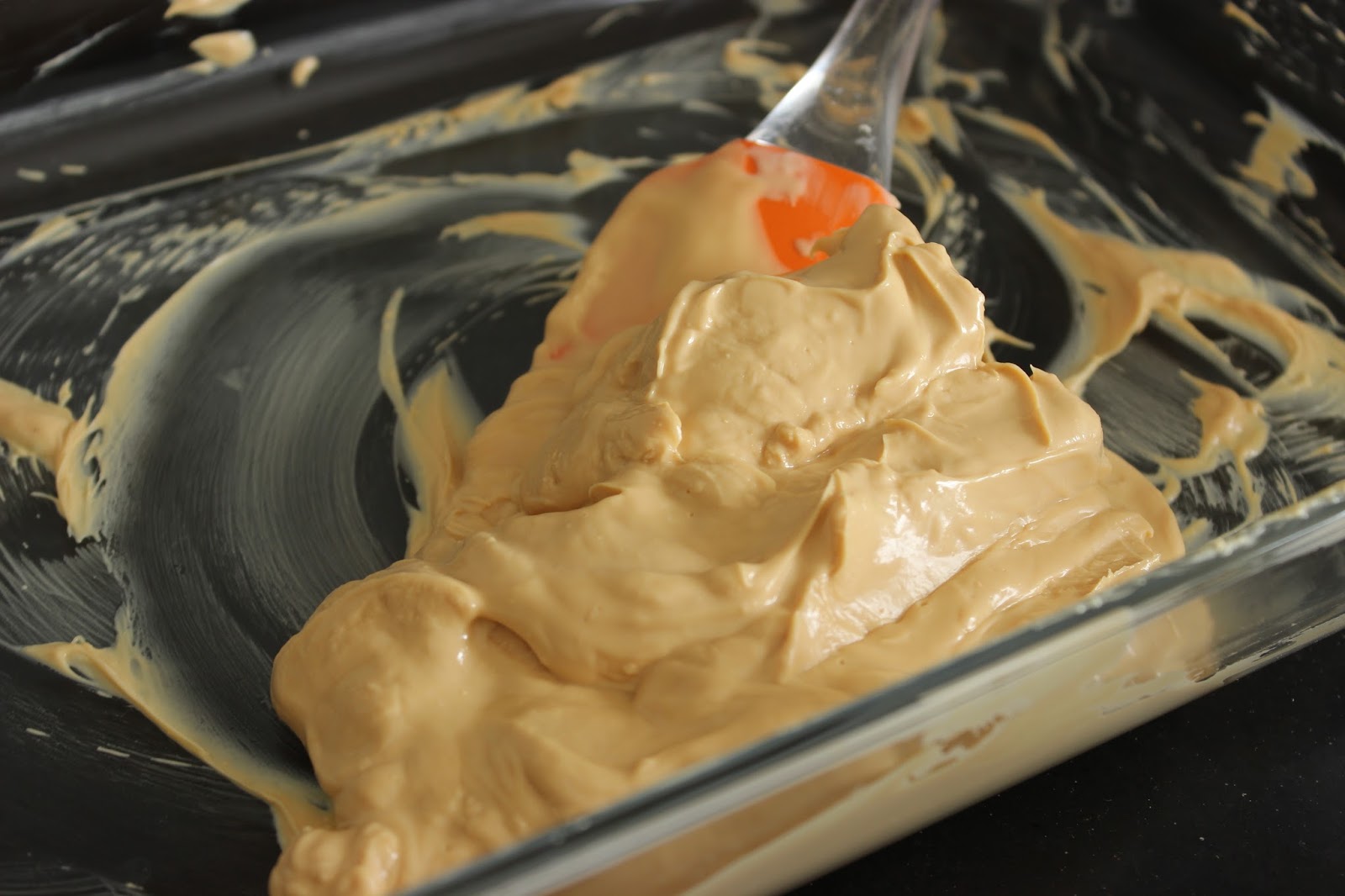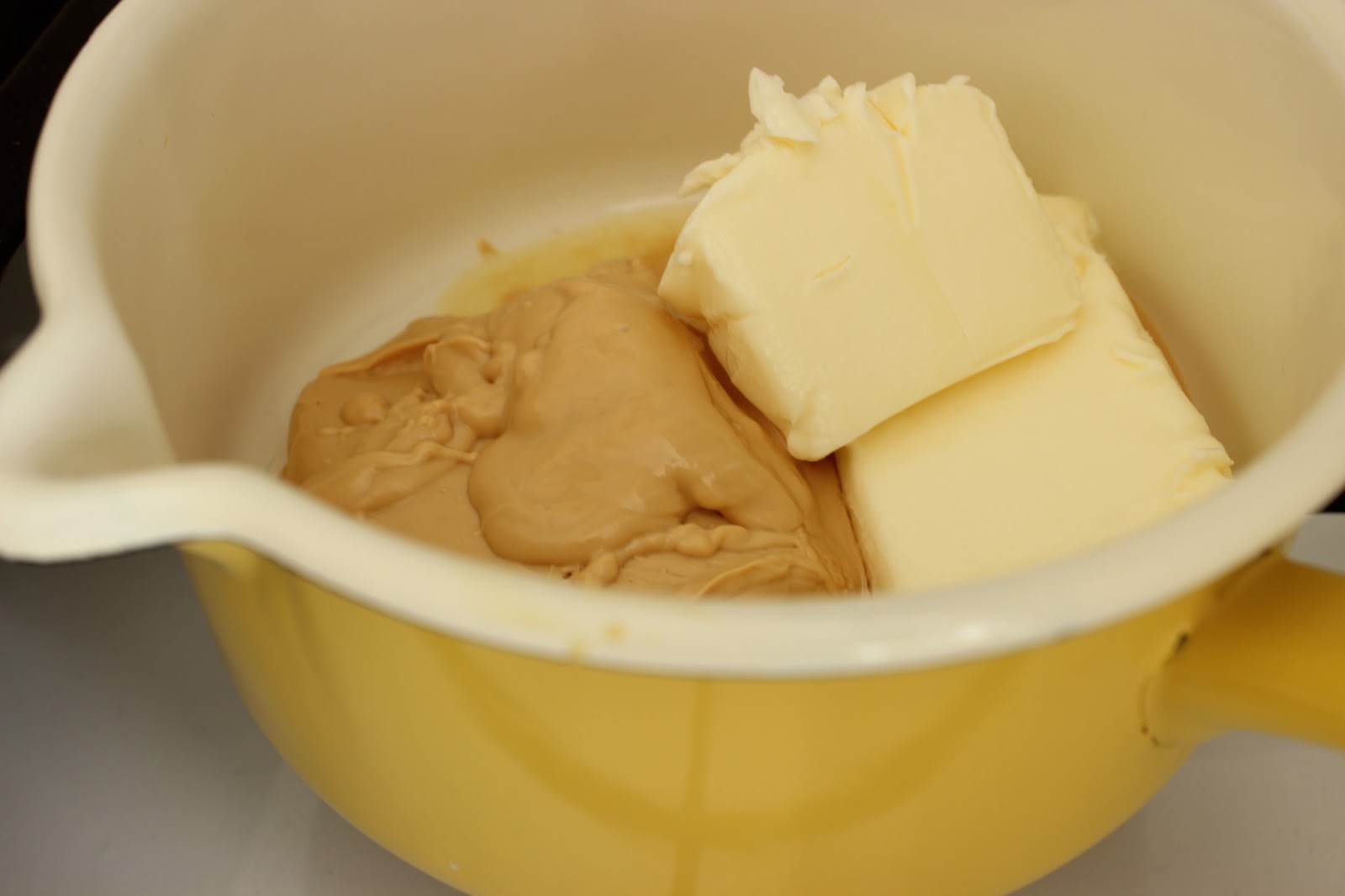 2. מניחים שוקולד לבן בתבנית קטנה (עדיף לא ישירות בתבנית התנור). מקרמלים בתנור למשך 30-35 דקות, כאשר כל חמש-עשר דקות מערבבים מעט, עד לקבלת צבע קרמלי/דומה לזה של חמאת בוטנים.