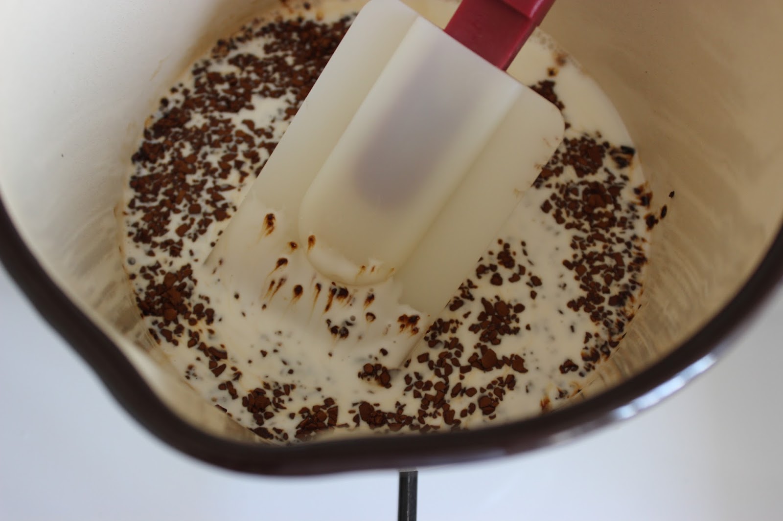 11. להכנת קצפת הקפה: מניחים שמנת מתוקה וקפה בסיר קטן. מבשלים יחד עד לקבלת שמנת בטעם קפה. מצננים.