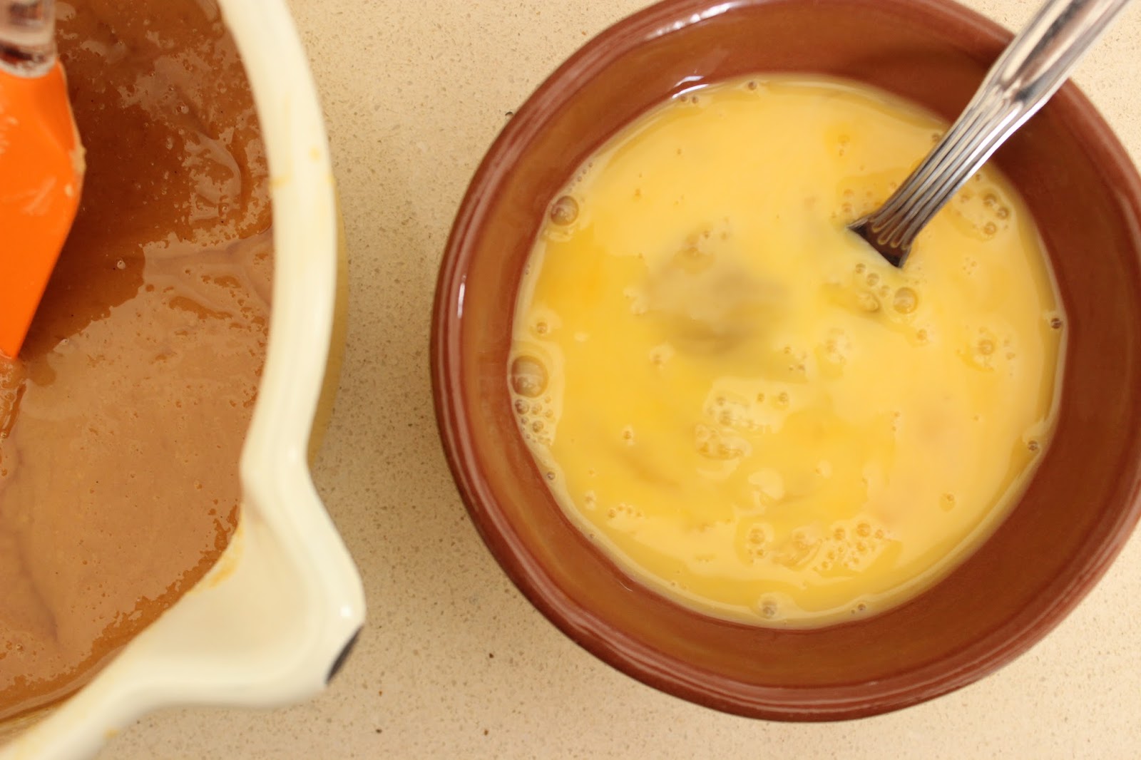 7. טורפים ביצים בקערה קטנה. מוסיפים לתערובת ומערבבים היטב.