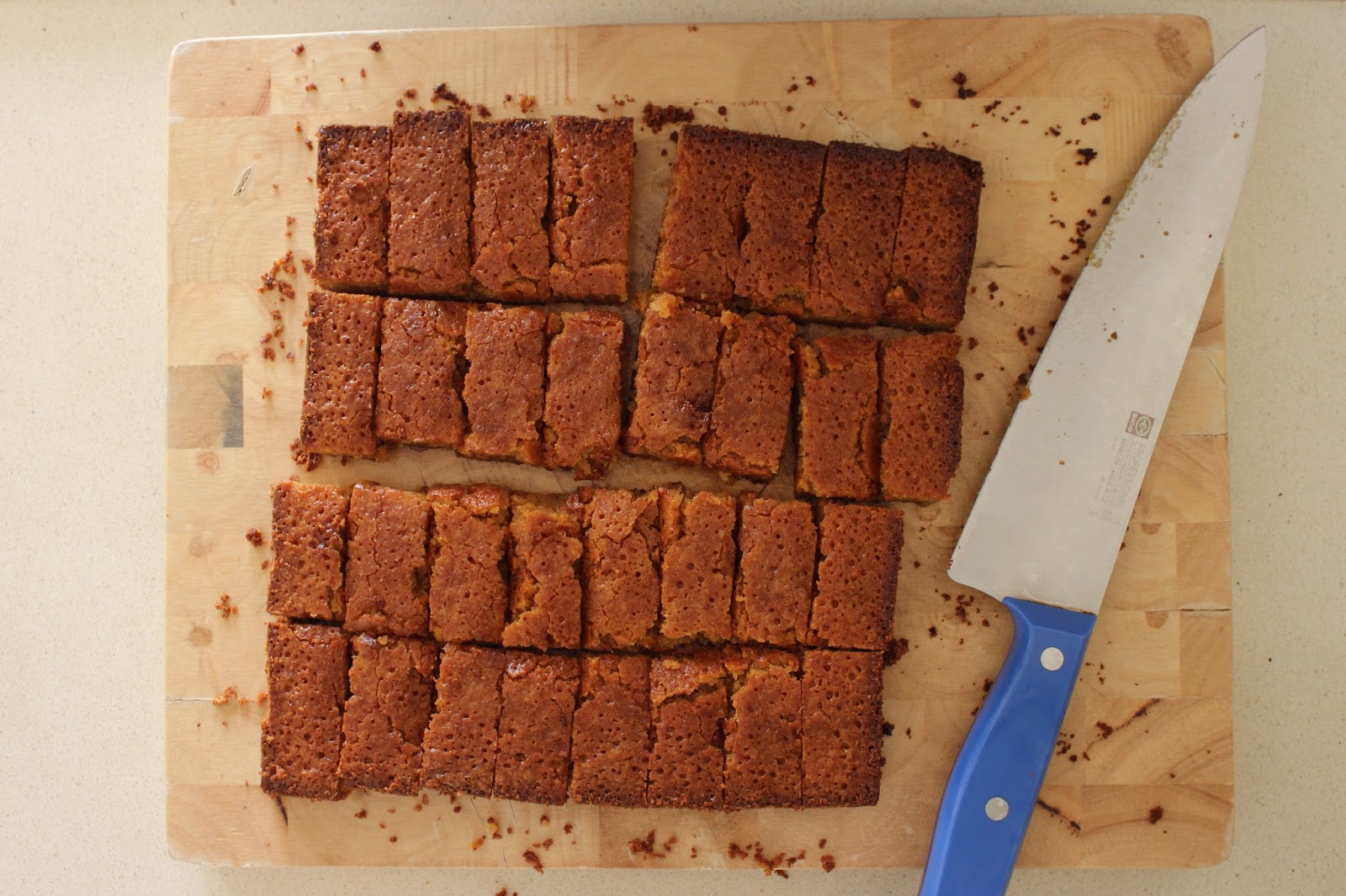 10. חותכים את הבראוניז ל-32 אצבעות (או כל צורה/גודל שרוצים).