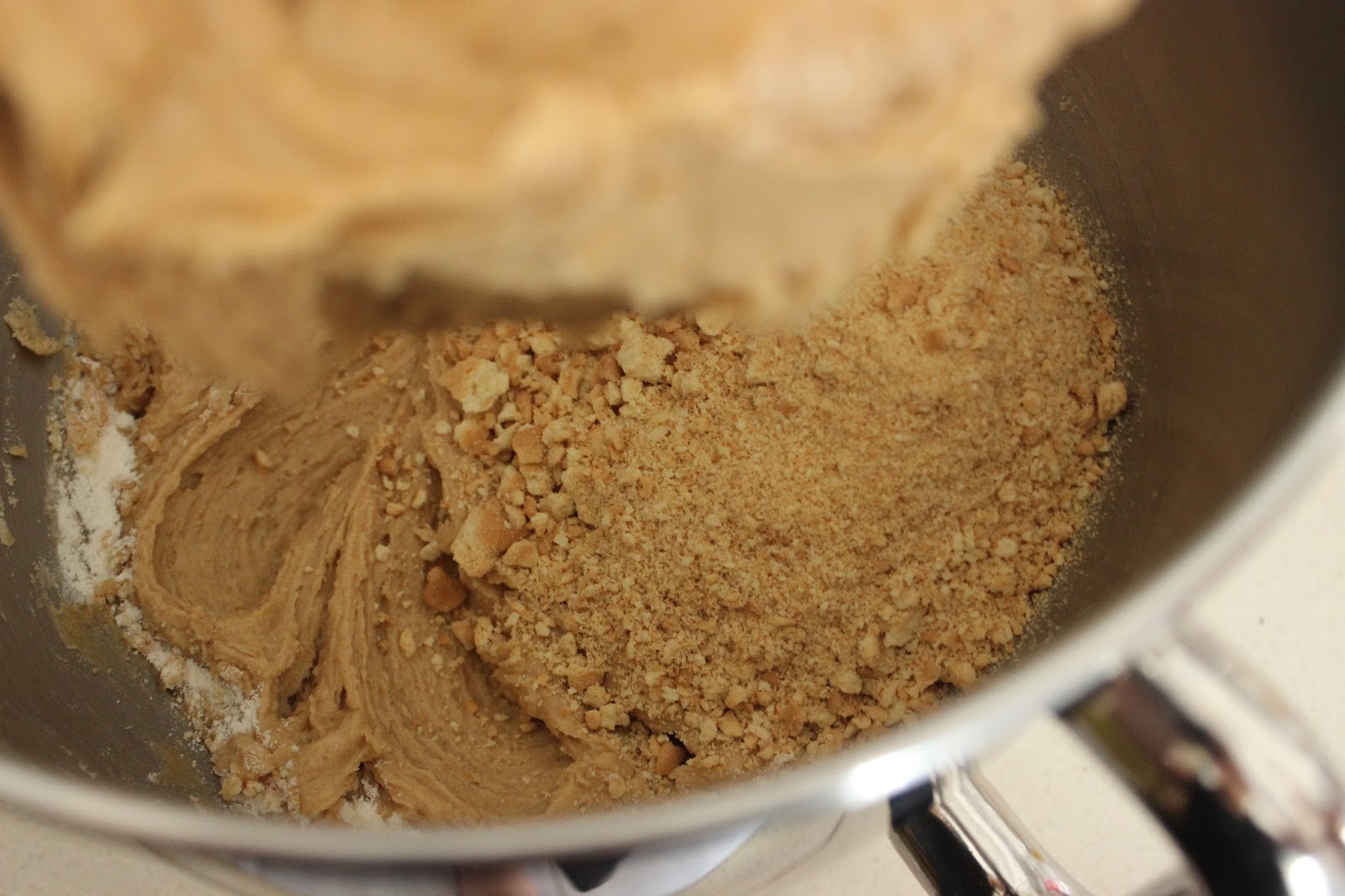 10. מוסיפים ביסקוויטים טחונים ומערבבים למספר שניות, רק עד לפיזור אחיד.