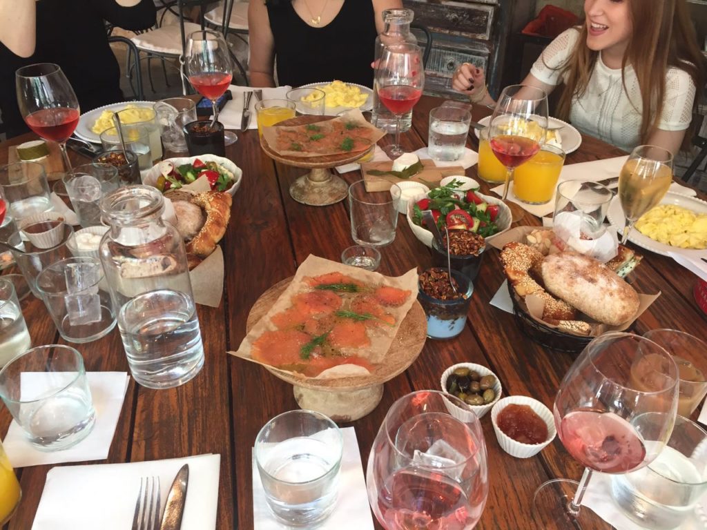 הזמנו ארוחת בוקר מעולה (איזו מקושקשת הורסת!) עם מלא לחמים ומאפים (עדיין הייתי בתקופת נטולת הגלוטן שלי, אבל הרשיתי לעצמי לחרוג באותו הבוקר) וקאווה (היי, מסתבר שזו בכל זאת מסיבת רווקות עם אלכוהול) וכל מיני מטבלים וגבינות ודברים מוזרים שאני לא מתקרבת אליהם, אבל שאר הבנות אהבו מאד.