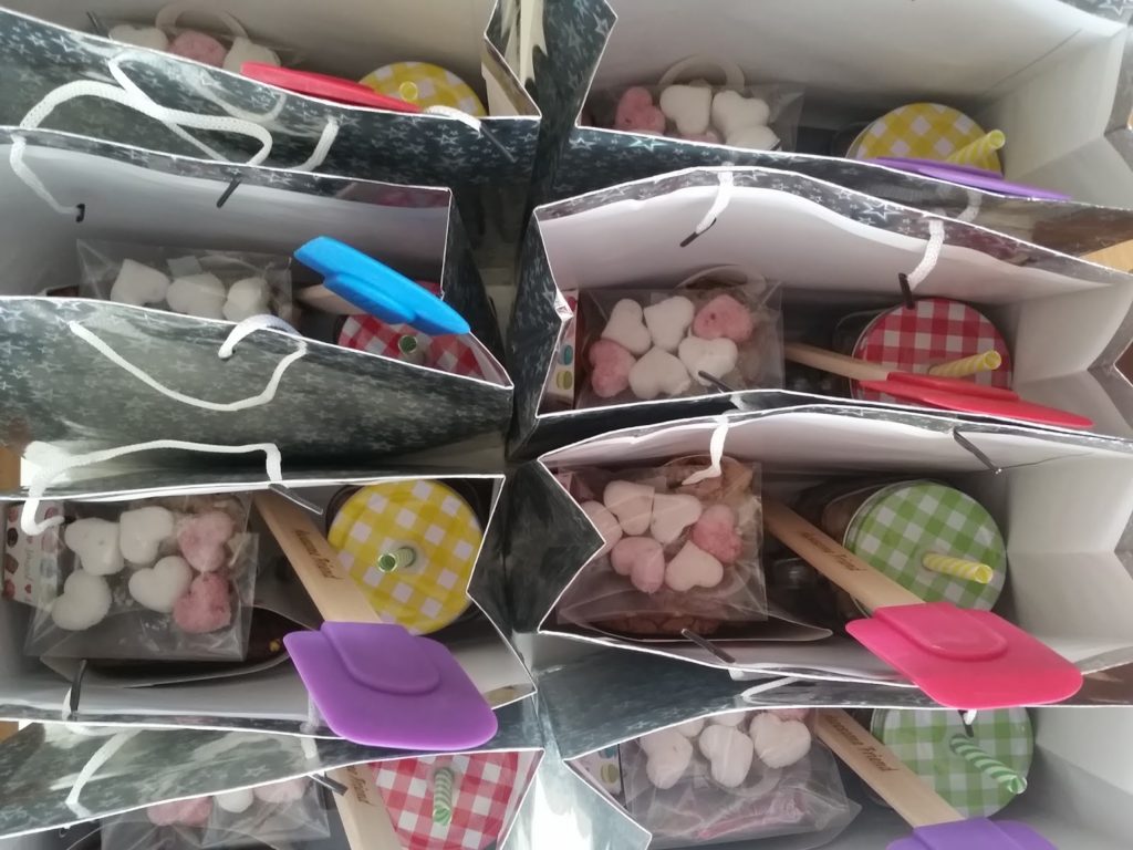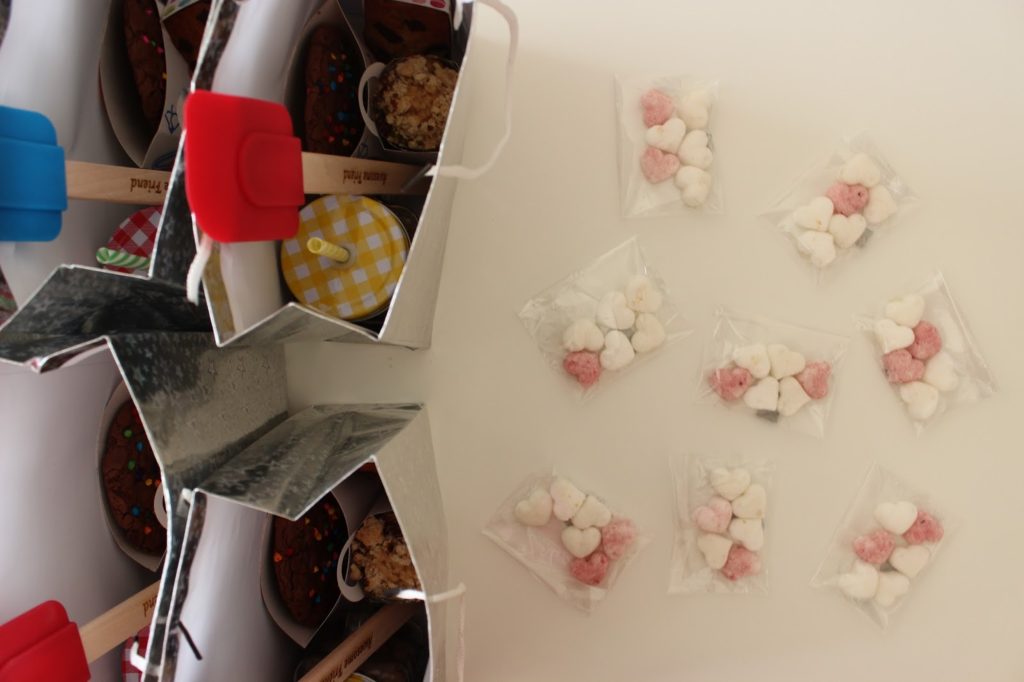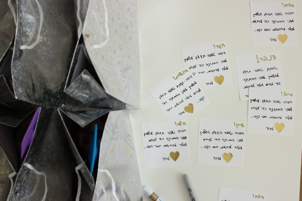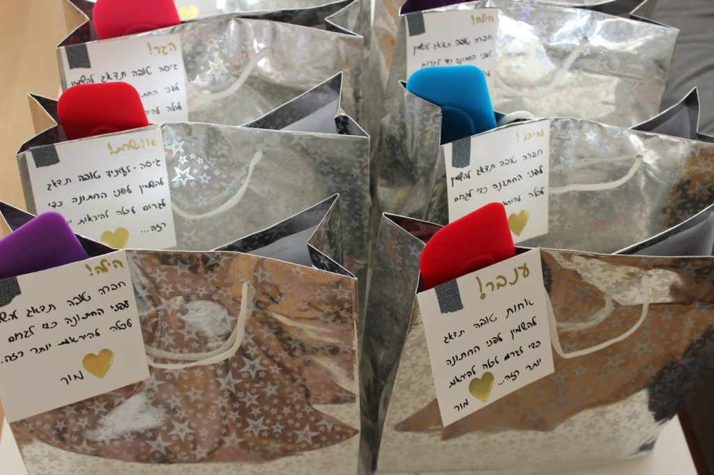 ואז היה תורי לתת לבנות את המתנות שלהן. אני לא באמת יודעת להעניק מתנה לא אכילה, אז כמובן שזה עשיתי. כל אחת מהבנות קיבלה שקית שהכילה: