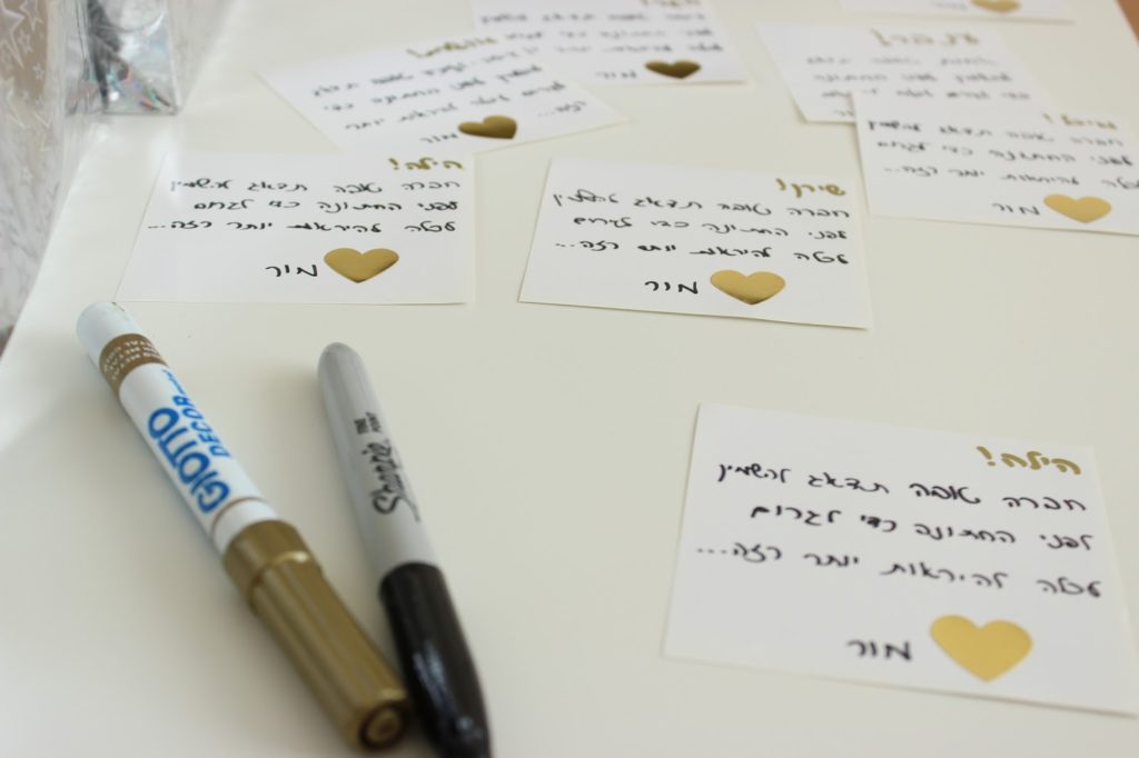 כמובן שעל כל שקית הצמדתי גם פתק ובו הסברתי לבנות שחברות אמיתיות צריכות להשמין לפני החתונה של החברה שלהן.. כדי לגרום לה להיראות רזה יותר. דא.