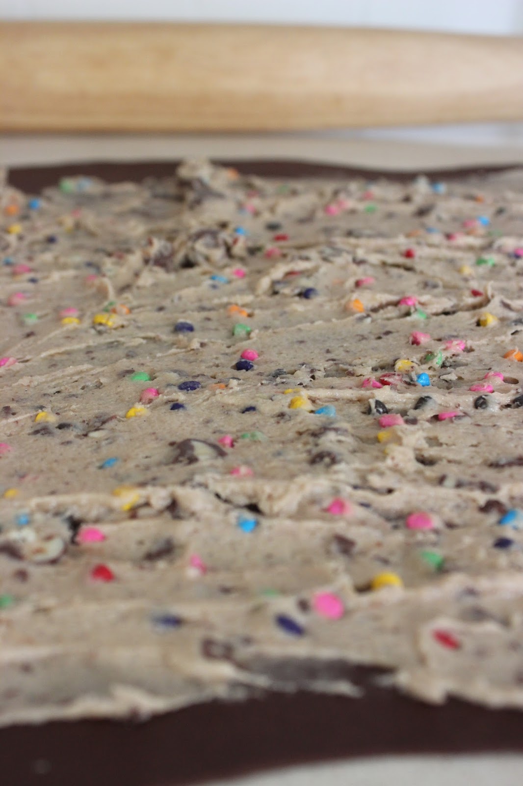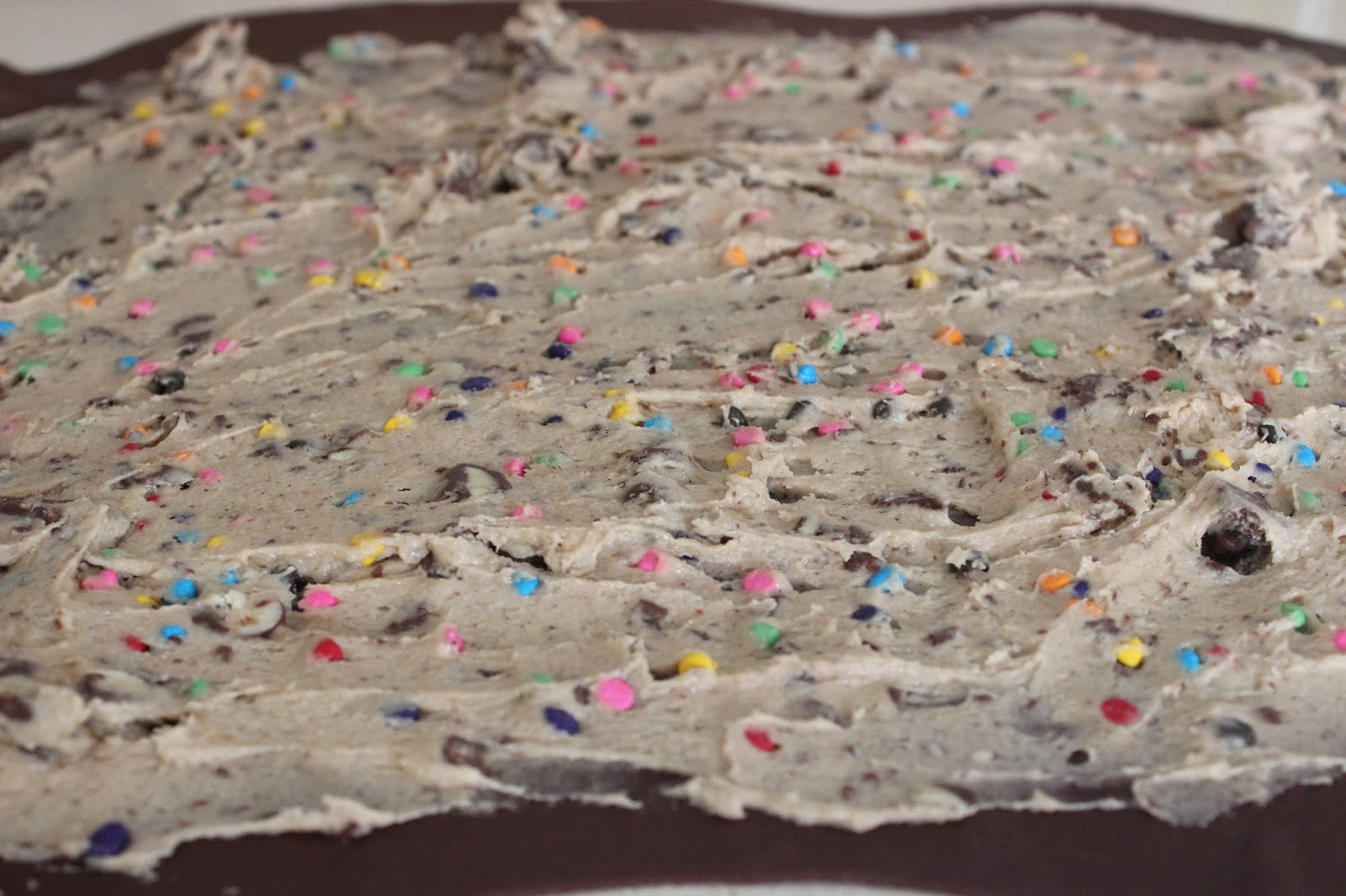 10. מורחים חצי מבצק העוגיות על כל מלבן בצק שמרים ומיישרים עם פלטה, כך שהכל מצופה.