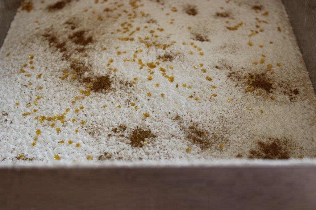 ונכון, אבקת הזהב שפיזרתי מעל המרשמלו, במטרה להפוך אותם לחגיגיים יותר, נראתה בפועל יותר כמו חול..