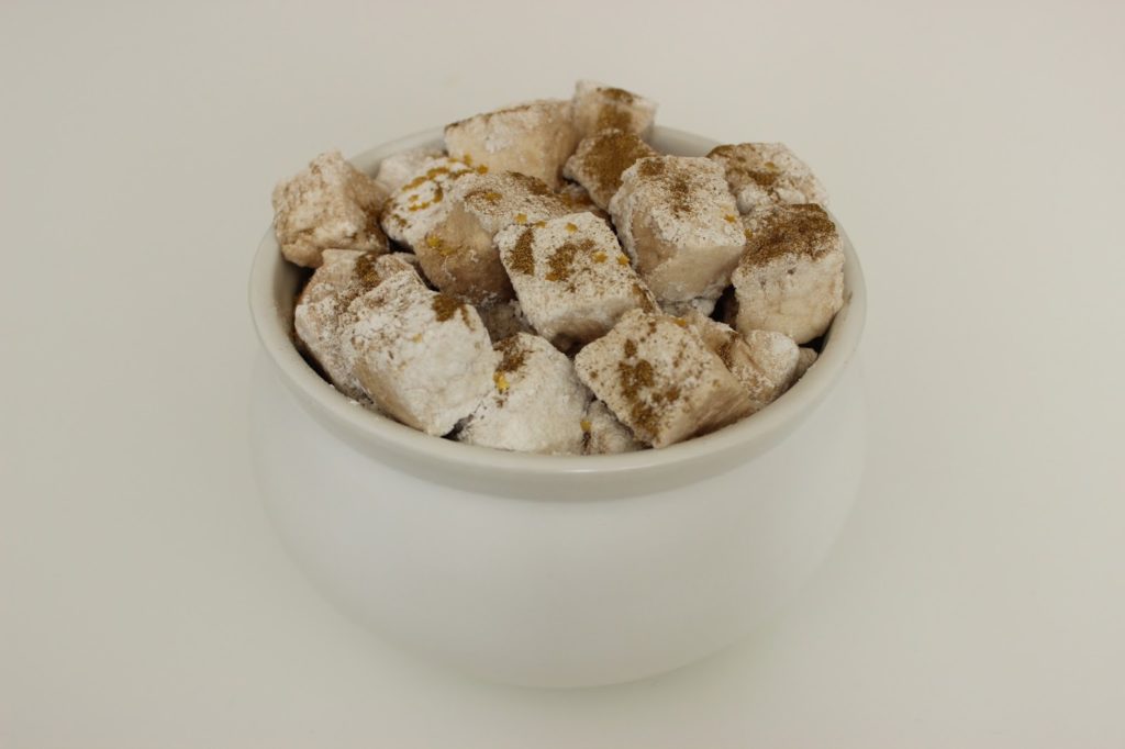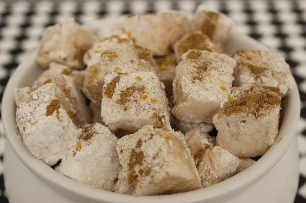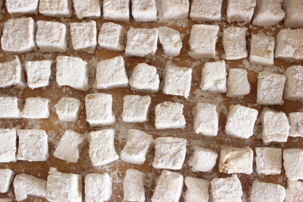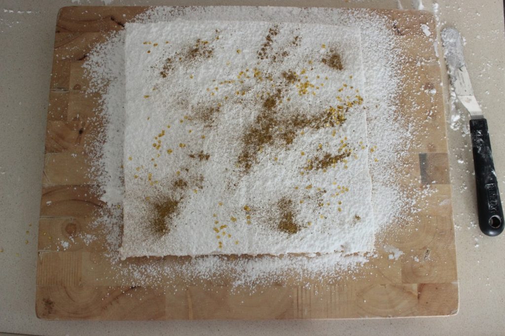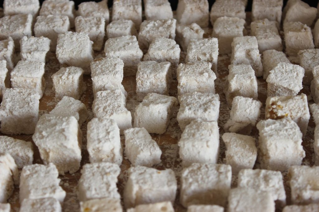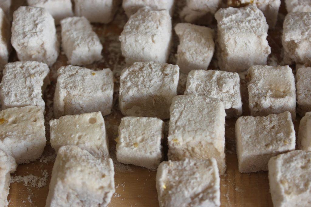 15. מניחים את המרשמלו על משטח ישר כלשהו ומיישים למשך שעתיים נוספות לפחות, לפני שמעבירים לקופסא אטומה.