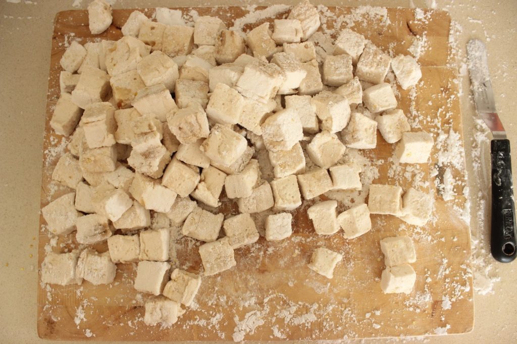 14. חותכים לקוביות ומצפים בציפוי מכל הכיוונים.