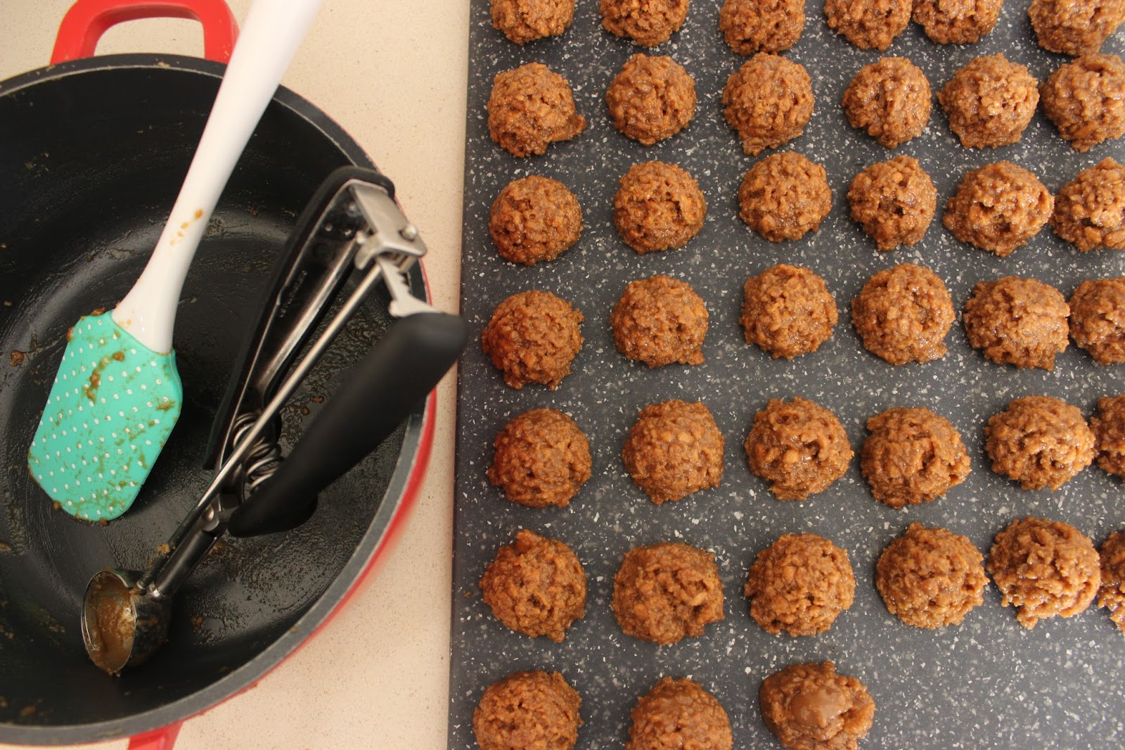 3. יוצרים כדורים קטנים מהתערובת (אני השתמשתי בכף גלידה קפיצית כדי לקבל כדורים אחידים, אבל זה ממש לא חובה).