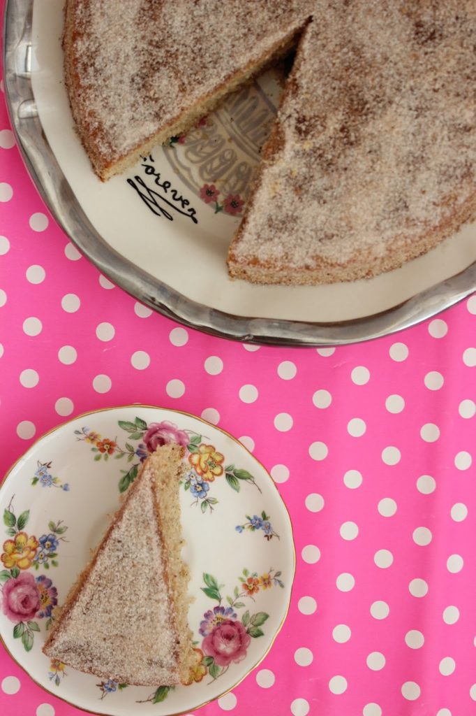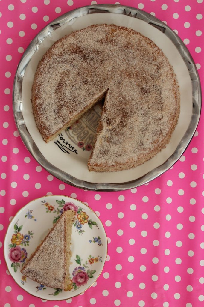 אז הכנתי לעצמי עוגת סניקרדודלס, כלומר עוגת קינמון חד שכבתית, די נמוכה, רכה רכה רכה, מצופה בחמאה מומסת ובהמון סוכר קינמון.
