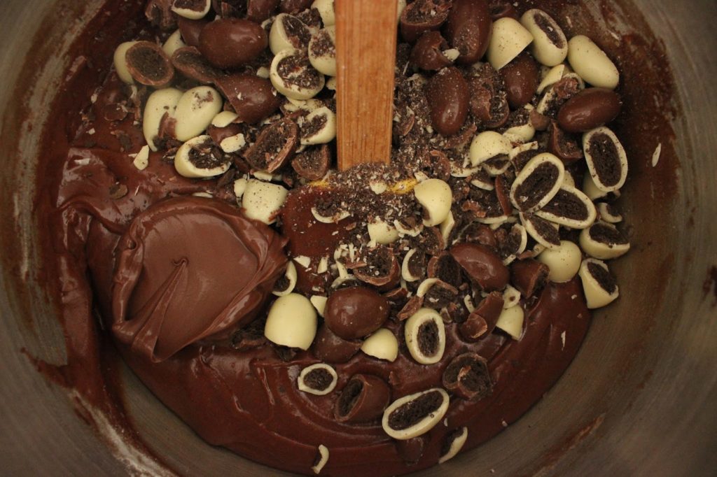 בשלב מסוים, אחרי שהכנתי פאי בראוניז של רמאים שוב ושוב, פתאום חשבתי — היי, מה יקרה אם אדחוף פנימה כל מיני חטיפי קליק קצוצים, ספציפית קליק ביסקוויט? איך זה יצא?