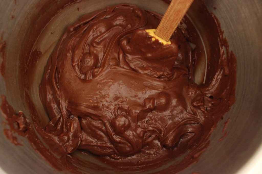 9. מוסיפים ממרח קליק ומערבבים היטב. מצננים את הגנאש מעט בטמפרטורת החדר, עד להסמכה חלקית (אפשר גם להעביר למקרר, על מנת לזרז את התהליך).