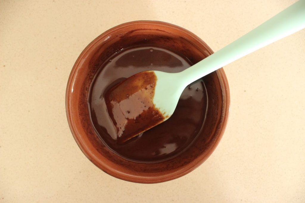 2. מניחים שוקולד מריר וחמאה בסיר בינוני. ממיסים על אש בינונית. מניחים בצד למספר דקות.