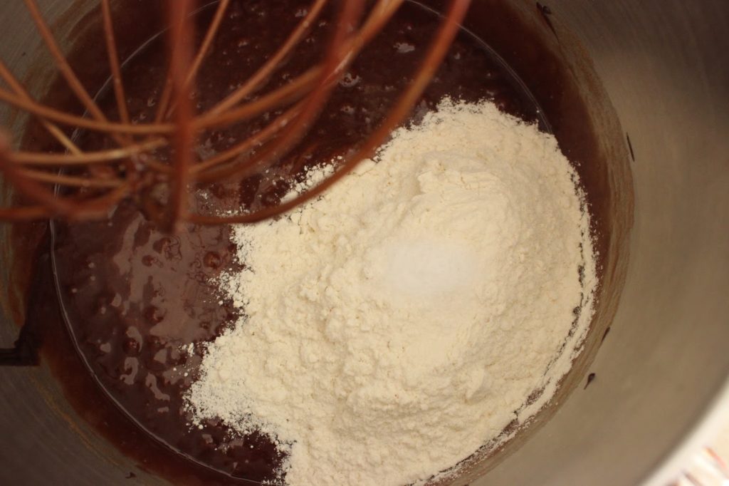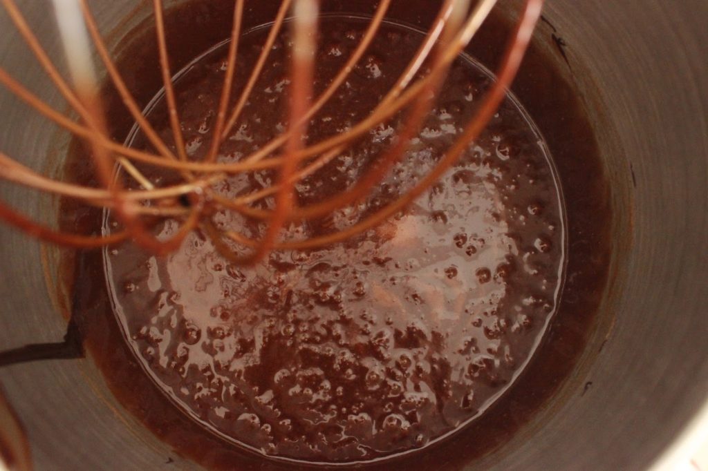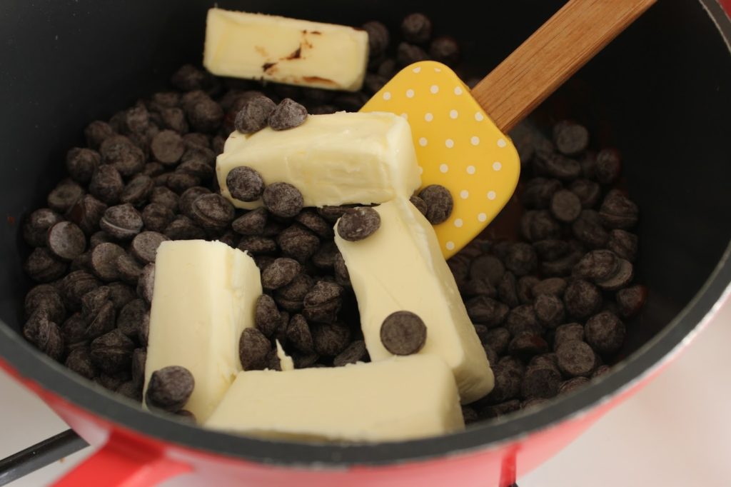 4. מוסיפים שוקולד וחמאה ומערבבים היטב, עד להיטמעות מלאה.