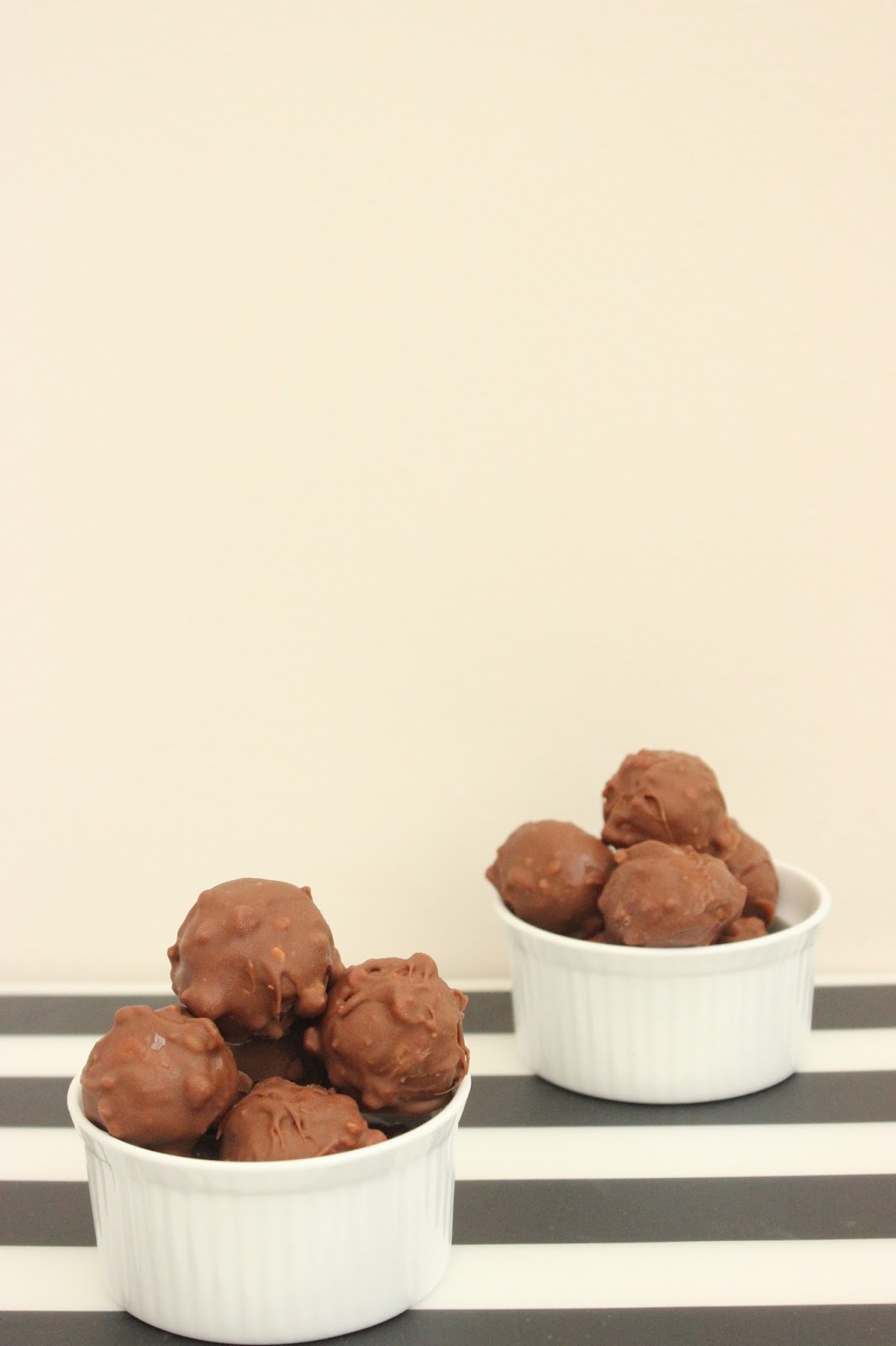 9. טובלים כל כדור בצק בציפוי השוקולד. מחזירים למגש ומקפיאים עד להתייצבות.