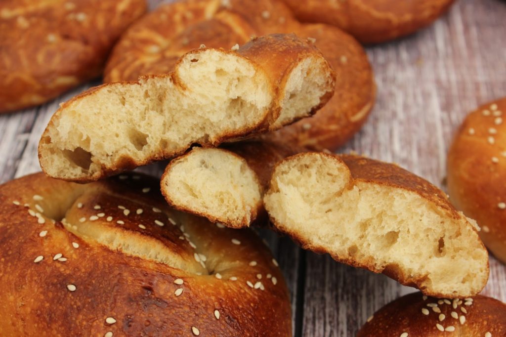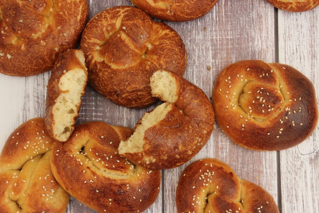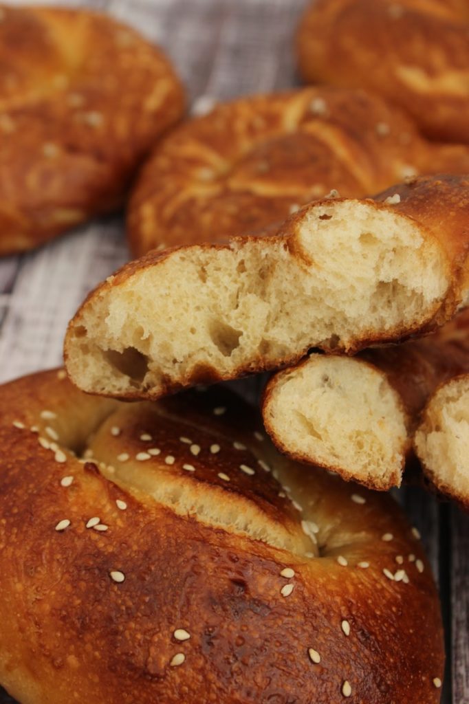 • שימו לב שכשאני מדברת על פרעצלים מתוקים ומלוחים, זה בעיקר ברמת הציפוי: בכל מקרה מדובר בבצק של חלה מתוקה, פשוט התערובת עם הסודה, בשילוב עם המלח הגס, נותן טעם יותר פרעצלי, וסירופ הסוכר מוסיף עוד מתיקות למאפים.