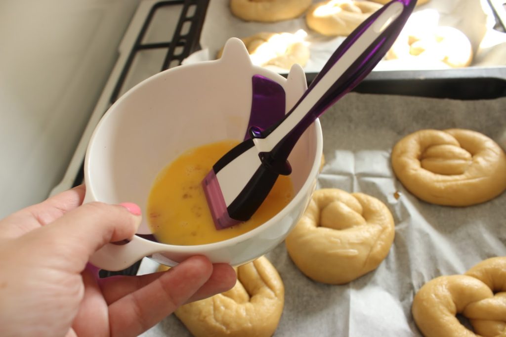 14. מורחים את כל הפרעצלים בשתי שכבות של ביצה טרופה.