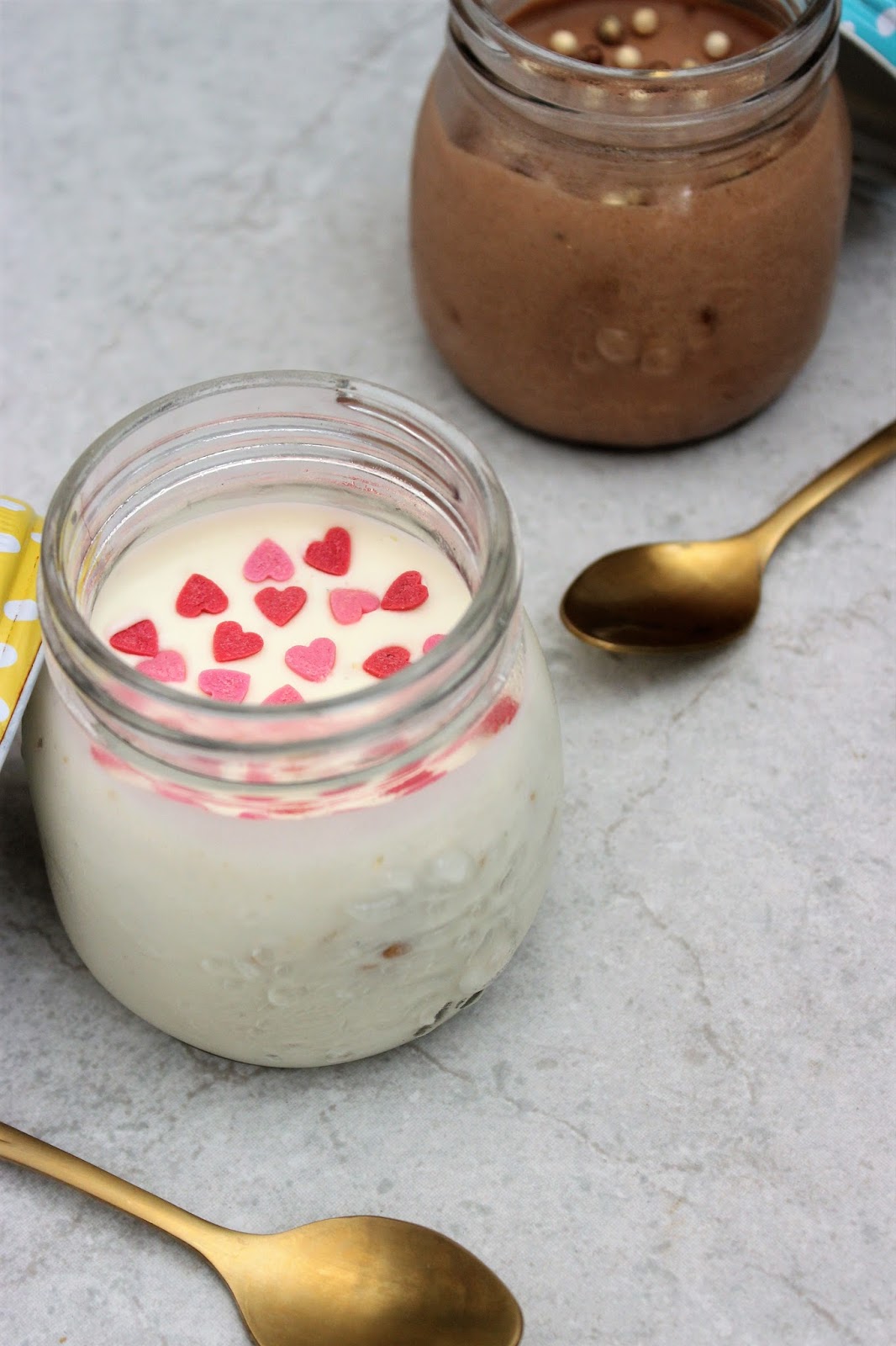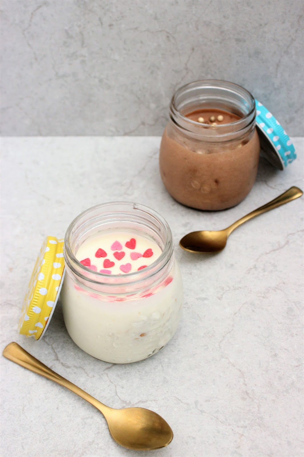 7. חוזרים על הפעולה עם המוס הלבן והפתי בר וניל בצנצנת השניה. מעבירים למקרר למשך שעתיים לפחות.