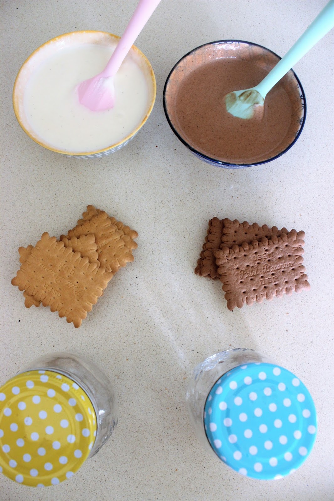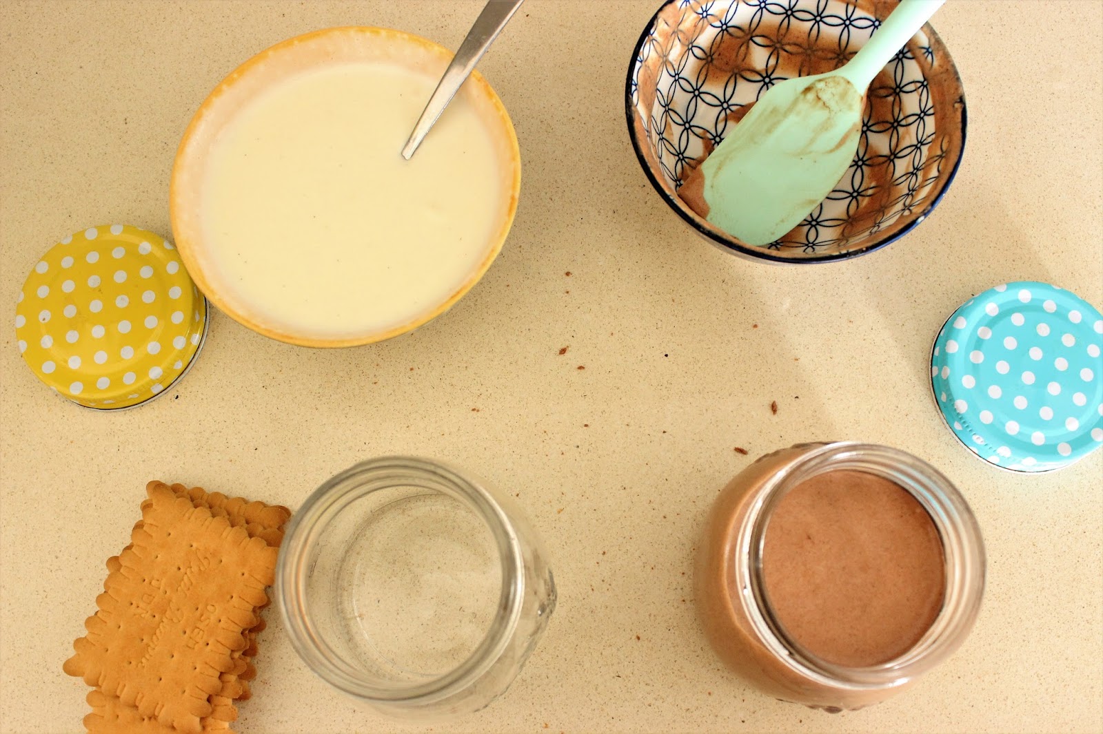 צנצנות מוס שוקולד וביסקוויטים זוגיות