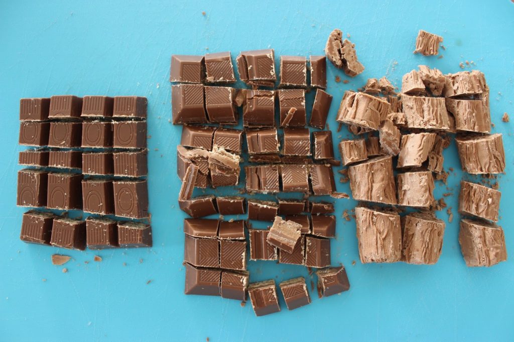 12. בינתיים קוצצים גס את חטיפי השוקולד – אמורה להתקבל כמות של בערך כוס אחת גדושה.